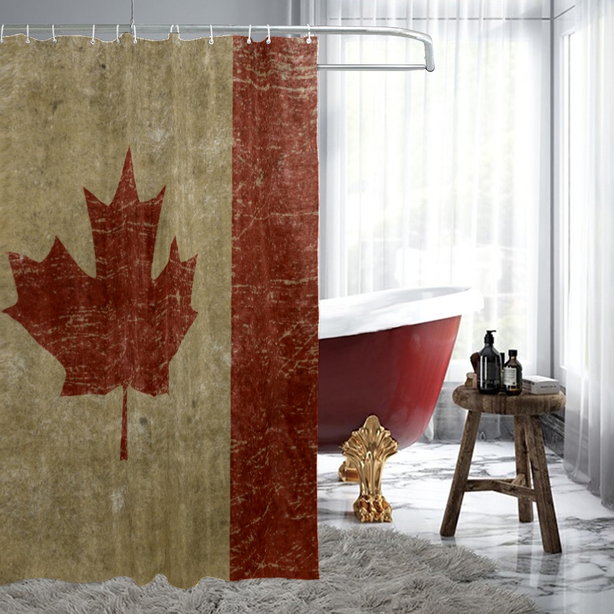 Shower Curtains for Bathroom Vintage Canada Flag Waterproof Polyester Fabric 60 x 72 inches Home Decor Bathroom Curtains for Kids Girls Boys with 12 Hooks