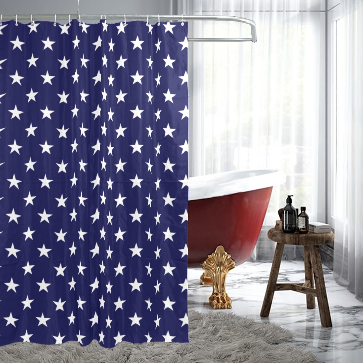 Shower Curtains for Bathroom USA Flag White Stars On Flag Blue Waterproof Polyester Fabric 60 x 72 inches Home Decor Bathroom Curtains for Kids Girls Boys with 12 Hooks