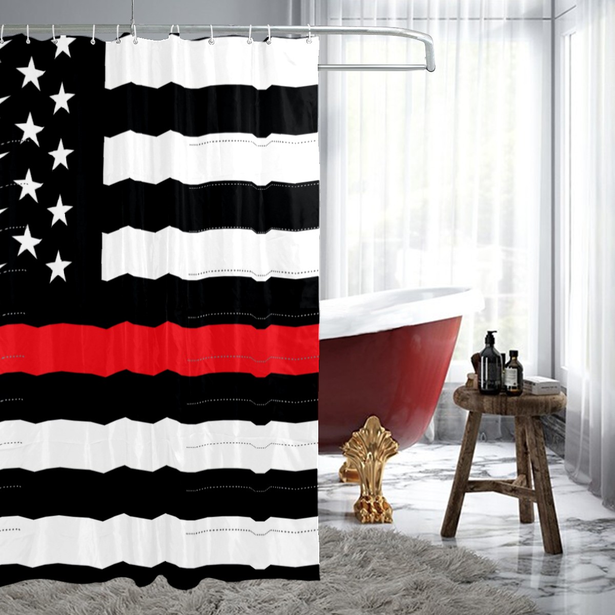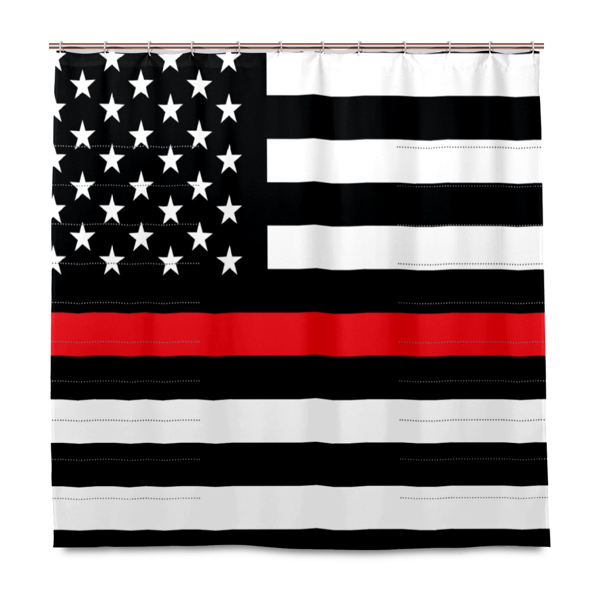 Shower Curtains for Bathroom Thin Red Line American Flag Waterproof Polyester Fabric 60 x 72 inches Home Decor Bathroom Curtains for Kids Girls Boys with 12 Hooks
