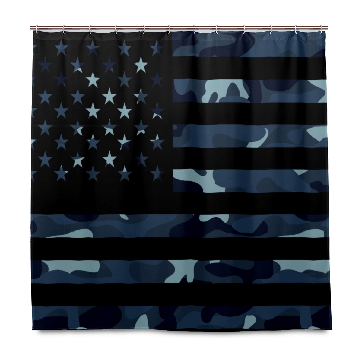 Shower Curtains for Bathroom Rustic Blue Camo American Flag Waterproof Polyester Fabric 60 x 72 inches Home Decor Bathroom Curtains for Kids Girls Boys with 12 Hooks
