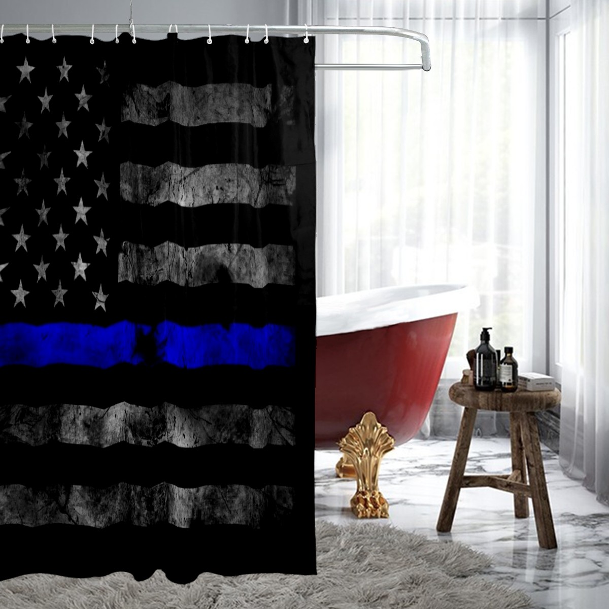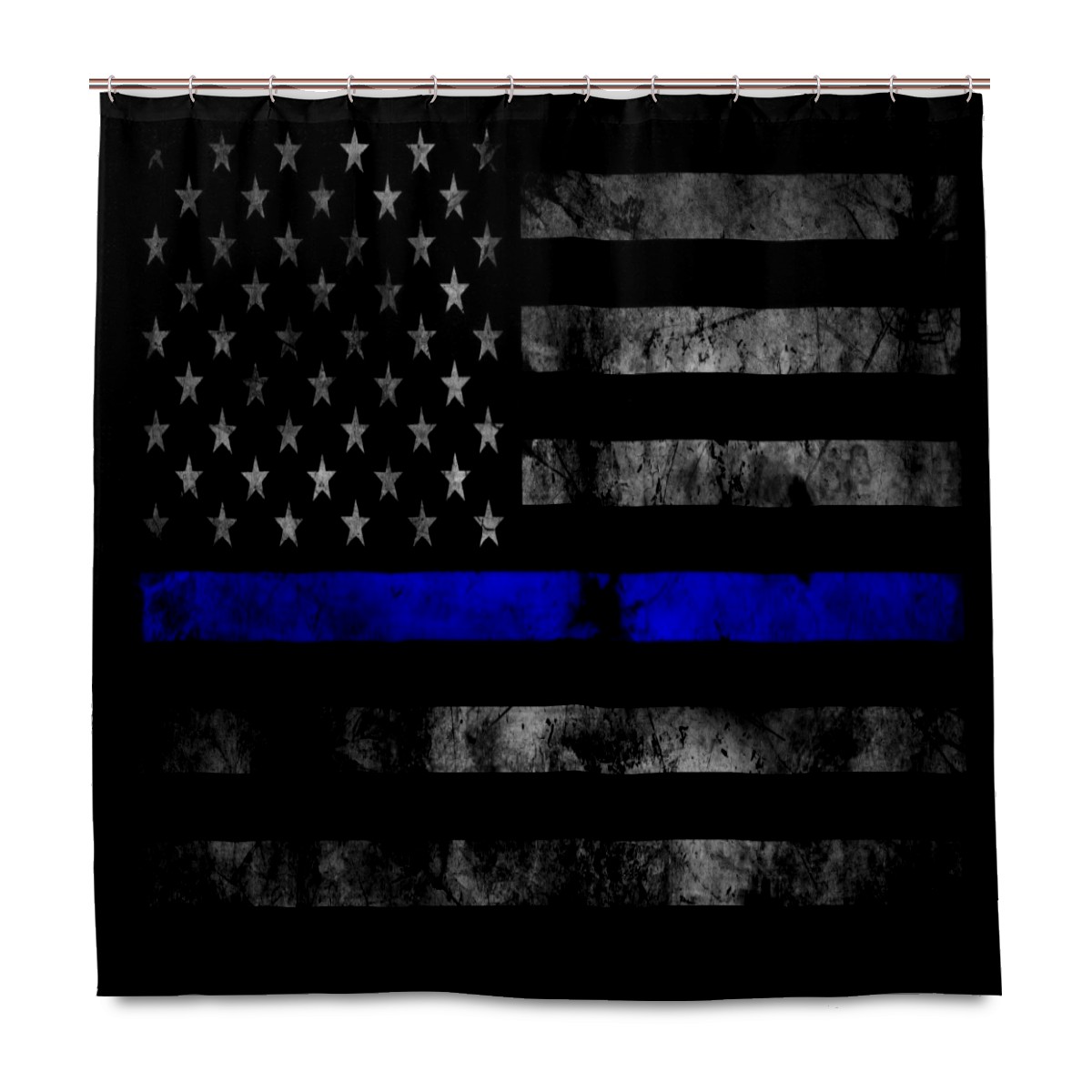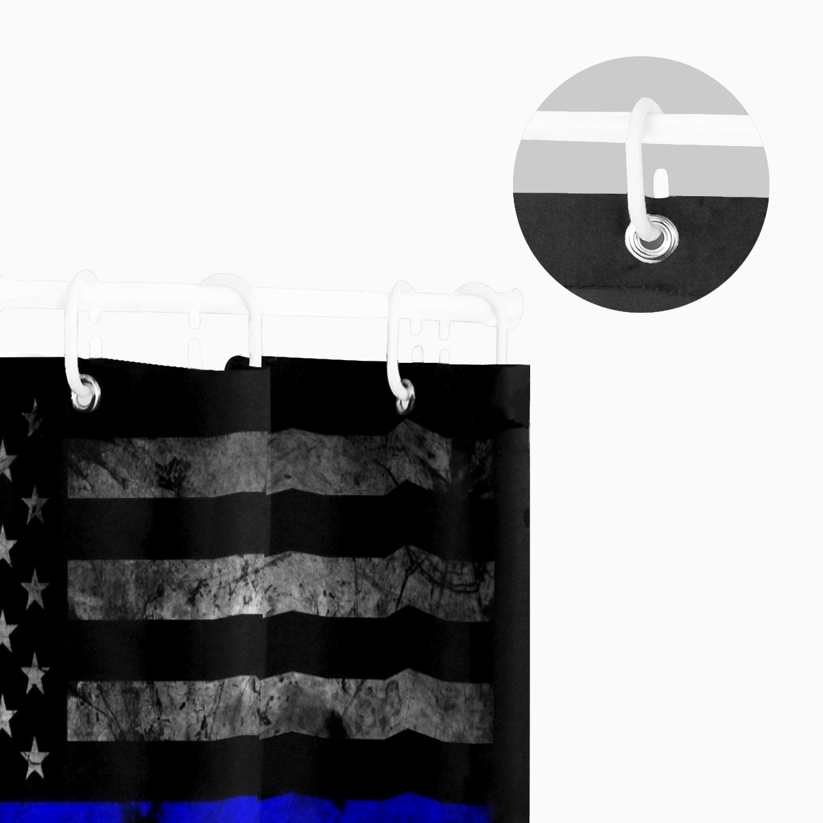 Shower Curtains for Bathroom Retro Thin Blue Line USA Flag Waterproof Polyester Fabric 60 x 72 inches Home Decor Bathroom Curtains for Kids Girls Boys with 12 Hooks