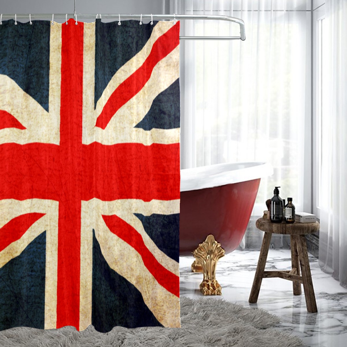 Shower Curtains for Bathroom Retro British UK Flag Waterproof Polyester Fabric 60 x 72 inches Home Decor Bathroom Curtains for Kids Girls Boys with 12 Hooks