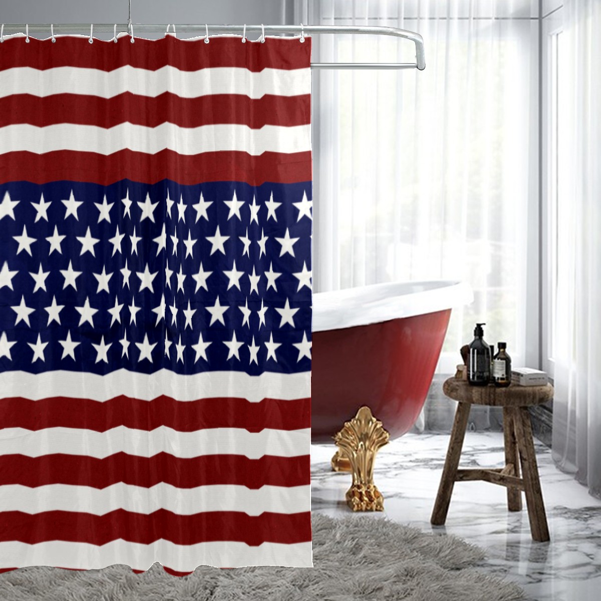 Shower Curtains for Bathroom Patriotic American Flag Waterproof Polyester Fabric 60 x 72 inches Home Decor Bathroom Curtains for Kids Girls Boys with 12 Hooks