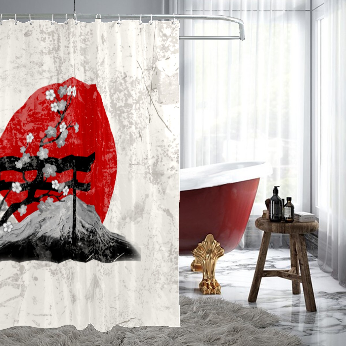 Shower Curtains for Bathroom Japan Vintage Painting Waterproof Polyester Fabric 60 x 72 inches Home Decor Bathroom Curtains for Kids Girls Boys with 12 Hooks