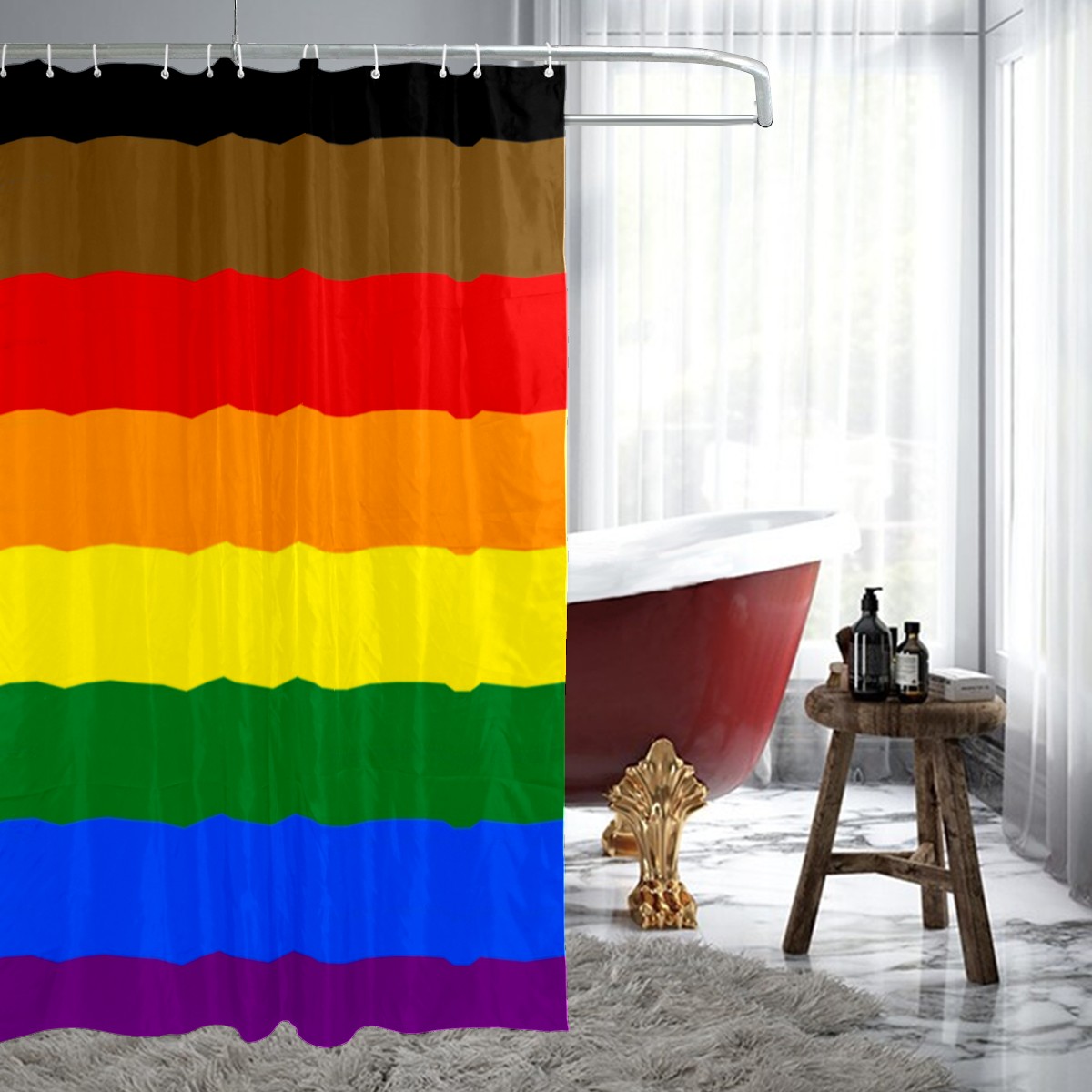 Shower Curtains for Bathroom Pride Rainbow Flag Waterproof Polyester Fabric 60 x 72 inches Home Decor Bathroom Curtains for Kids Girls Boys with 12 Hooks