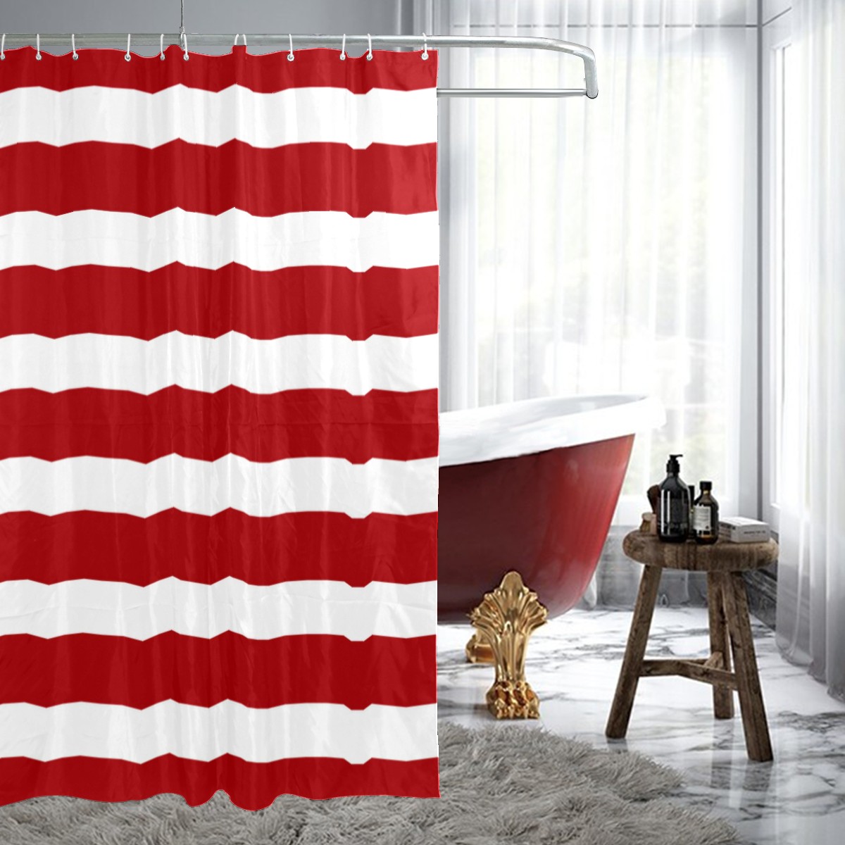 Shower Curtains for Bathroom Independence Day Red White Stripe Waterproof Polyester Fabric 60 x 72 inches Home Decor Bathroom Curtains for Kids Girls Boys with 12 Hooks