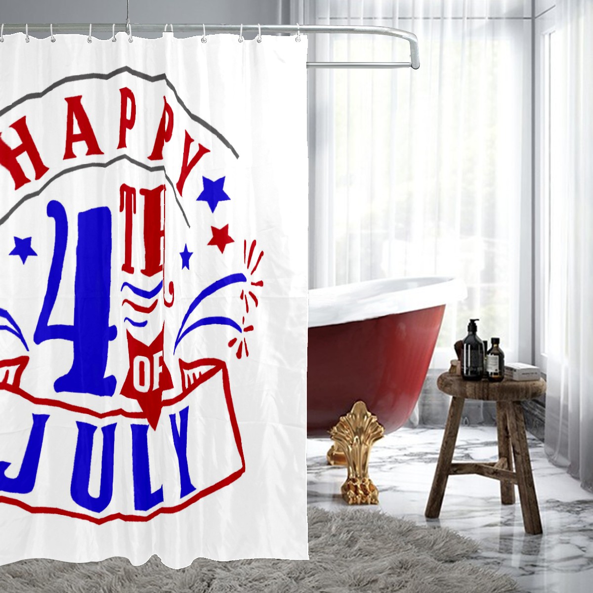 Shower Curtains for Bathroom Happy 4th Of July Independence Day Waterproof Polyester Fabric 60 x 72 inches Home Decor Bathroom Curtains for Kids Girls Boys with 12 Hooks