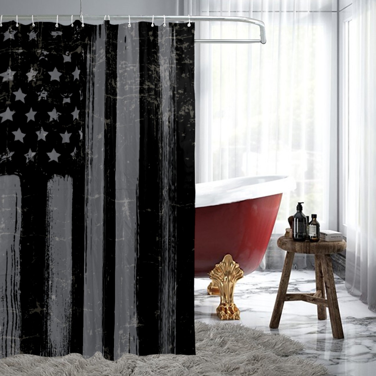 Shower Curtains for Bathroom Grunge Retro American Flag Waterproof Polyester Fabric 60 x 72 inches Home Decor Bathroom Curtains for Kids Girls Boys with 12 Hooks