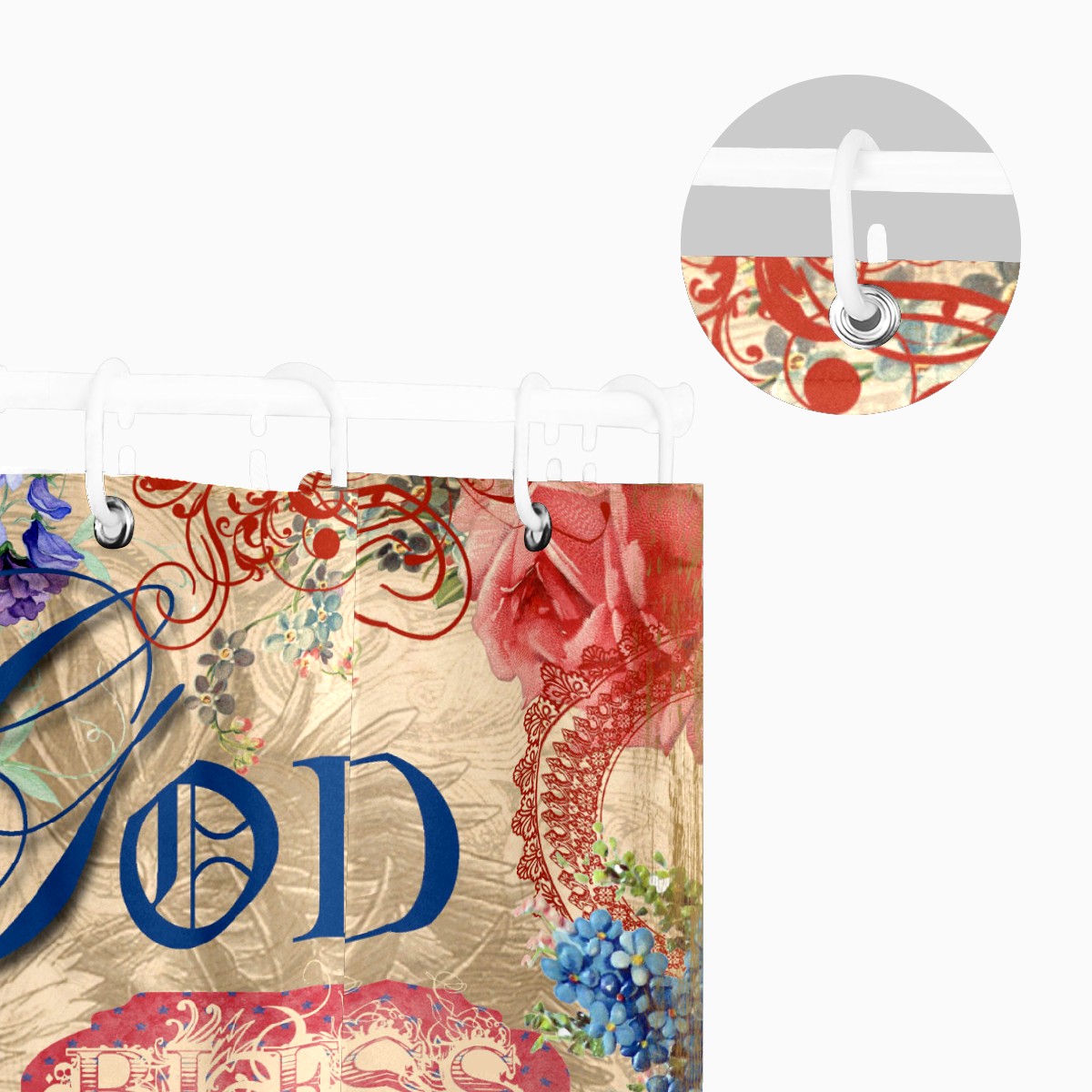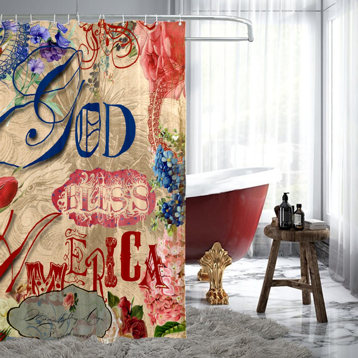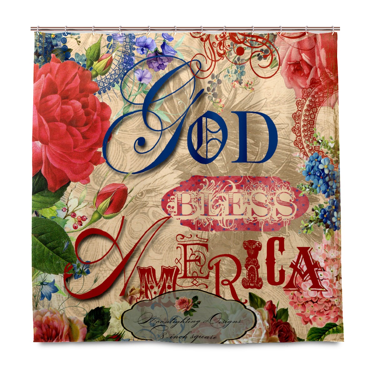 Shower Curtains for Bathroom God Bless American Rose Flower Waterproof Polyester Fabric 60 x 72 inches Home Decor Bathroom Curtains for Kids Girls Boys with 12 Hooks
