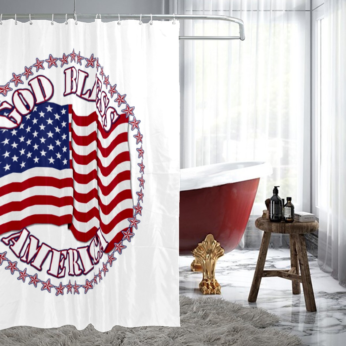 Shower Curtains for Bathroom God Bless America With USA Flag Waterproof Polyester Fabric 60 x 72 inches Home Decor Bathroom Curtains for Kids Girls Boys with 12 Hooks