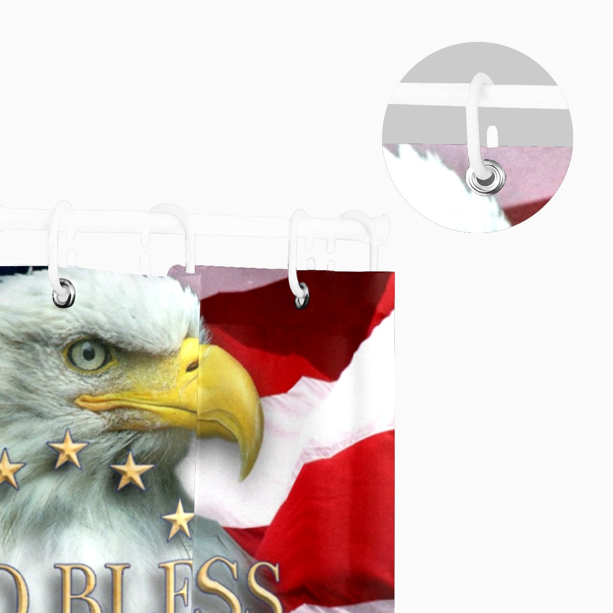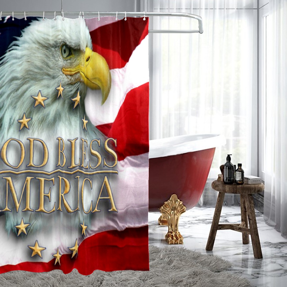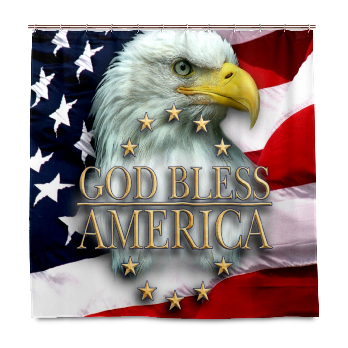 Shower Curtains for Bathroom God Bless American Bald Eagle Waterproof Polyester Fabric 60 x 72 inches Home Decor Bathroom Curtains for Kids Girls Boys with 12 Hooks