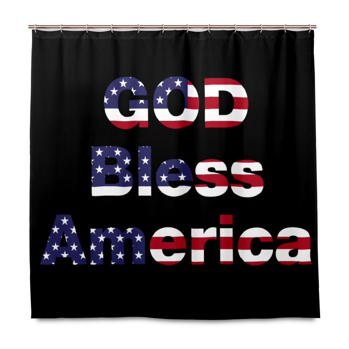 Shower Curtains for Bathroom God Bless America Flags Waterproof Polyester Fabric 60 x 72 inches Home Decor Bathroom Curtains for Kids Girls Boys with 12 Hooks