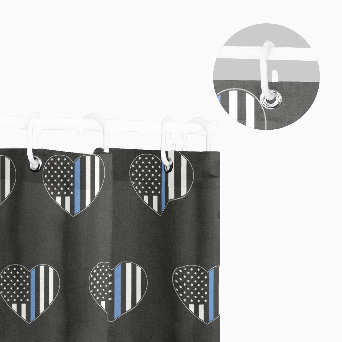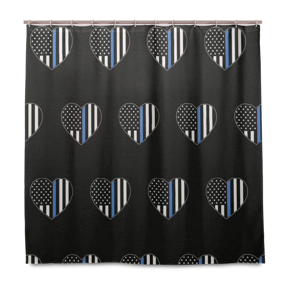 Shower Curtains for Bathroom Blue Thin Line American Flag Heart Waterproof Polyester Fabric 60 x 72 inches Home Decor Bathroom Curtains for Kids Girls Boys with 12 Hooks