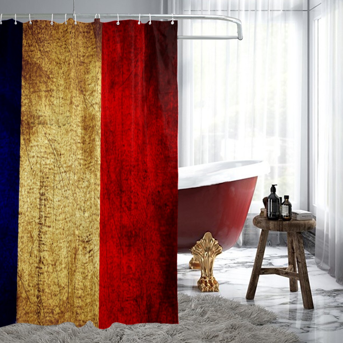 Shower Curtains for Bathroom Flag Of France Vintage Grunge Waterproof Polyester Fabric 60 x 72 inches Home Decor Bathroom Curtains for Kids Girls Boys with 12 Hooks