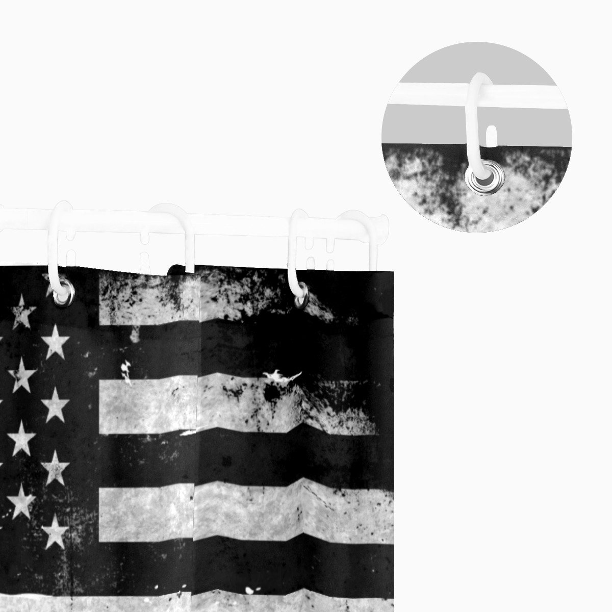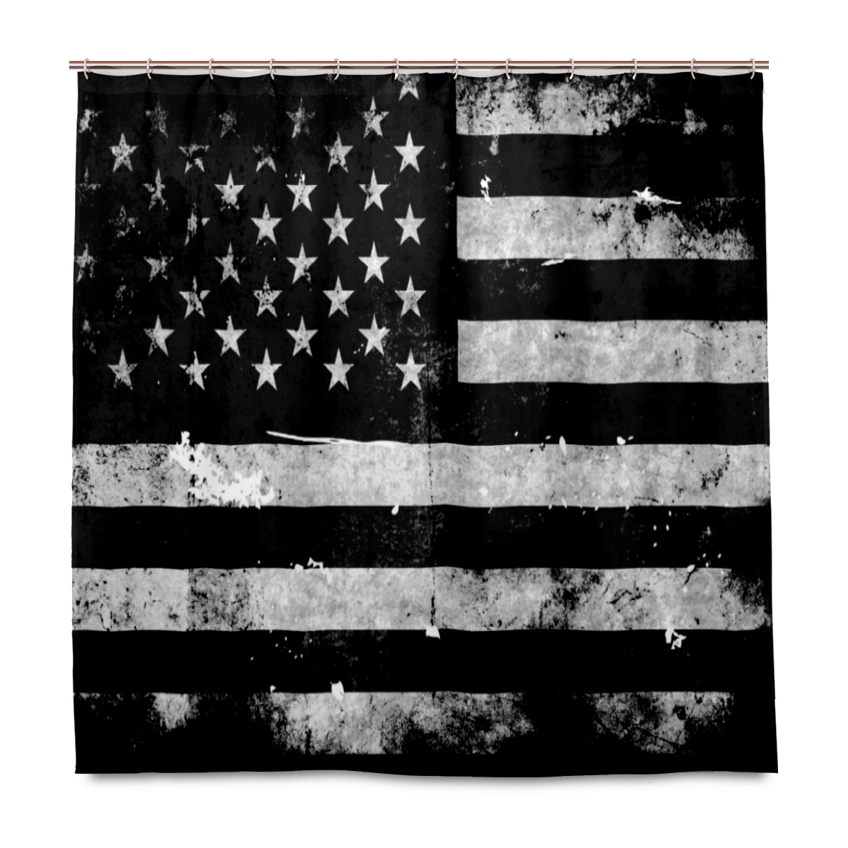 Shower Curtains for Bathroom Black White Grunge American Flag Waterproof Polyester Fabric 60 x 72 inches Home Decor Bathroom Curtains for Kids Girls Boys with 12 Hooks