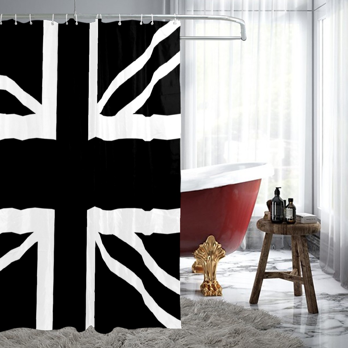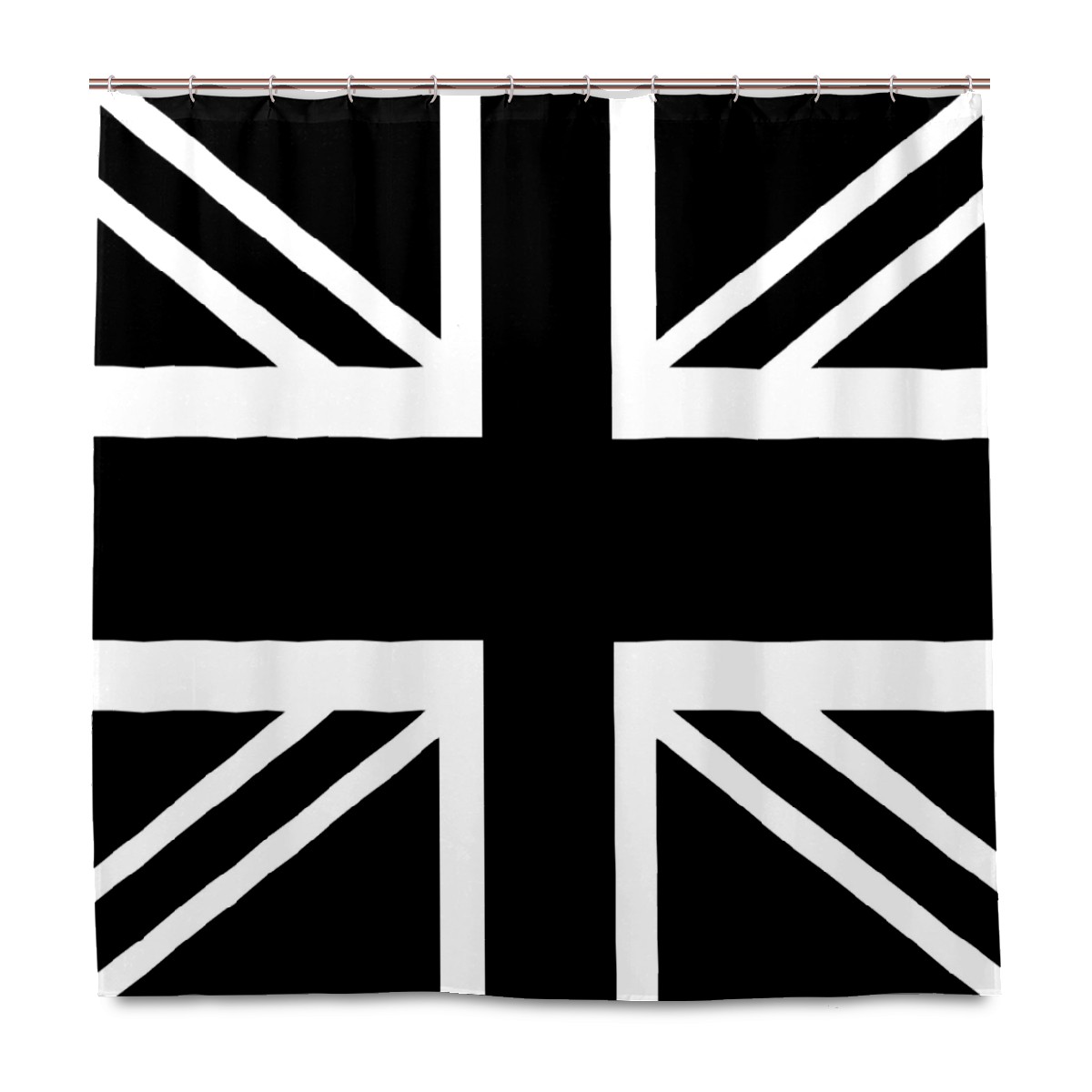 Shower Curtains for Bathroom Black White UK Flag Waterproof Polyester Fabric 60 x 72 inches Home Decor Bathroom Curtains for Kids Girls Boys with 12 Hooks