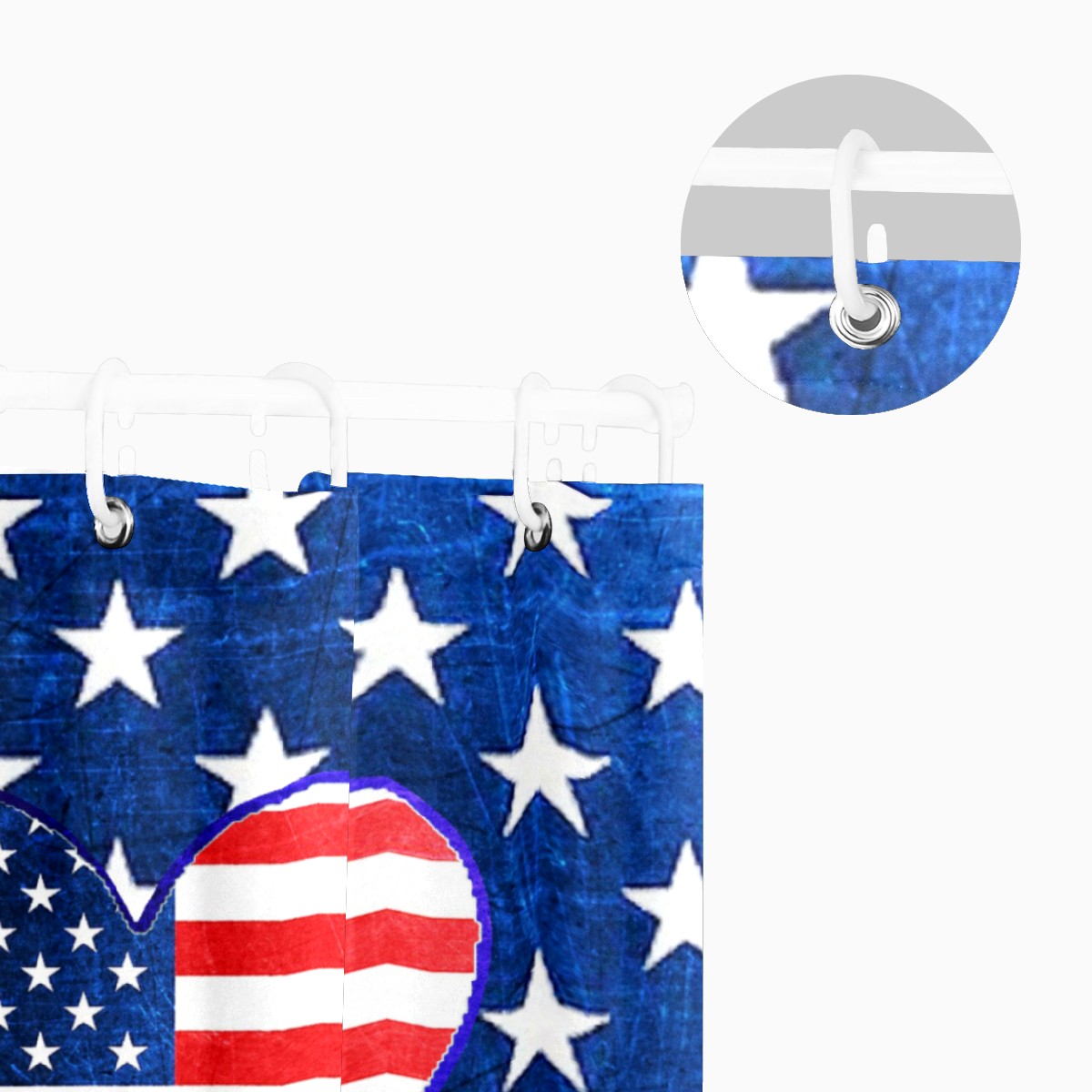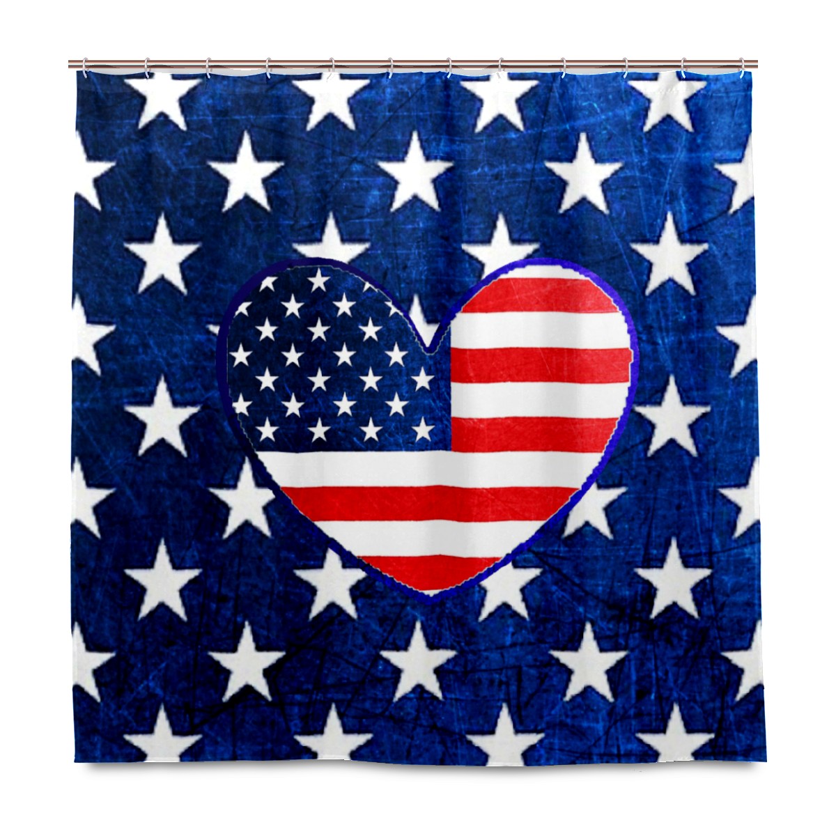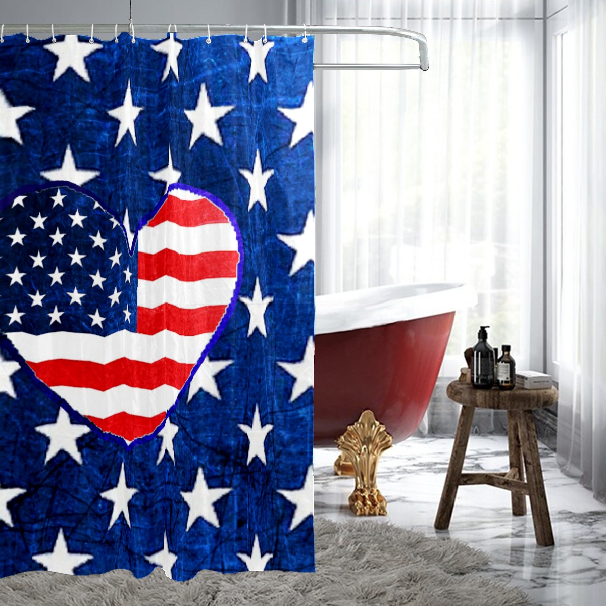Shower Curtains for Bathroom American Flag Heart Red White Blue Waterproof Polyester Fabric 60 x 72 inches Home Decor Bathroom Curtains for Kids Girls Boys with 12 Hooks