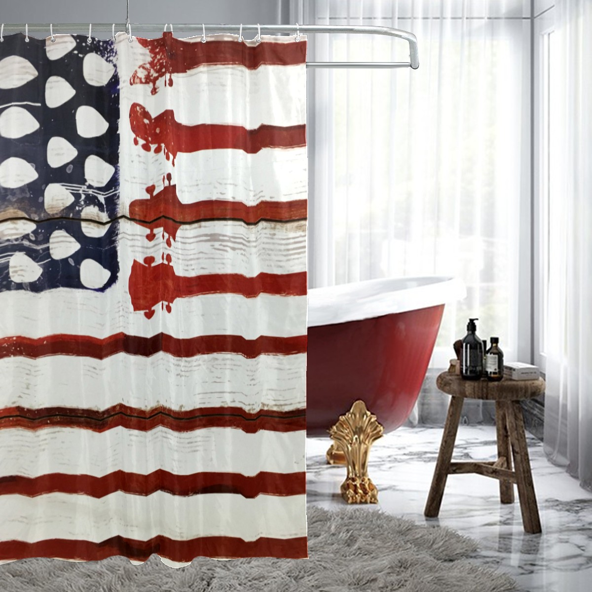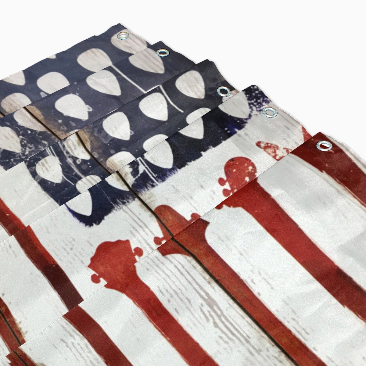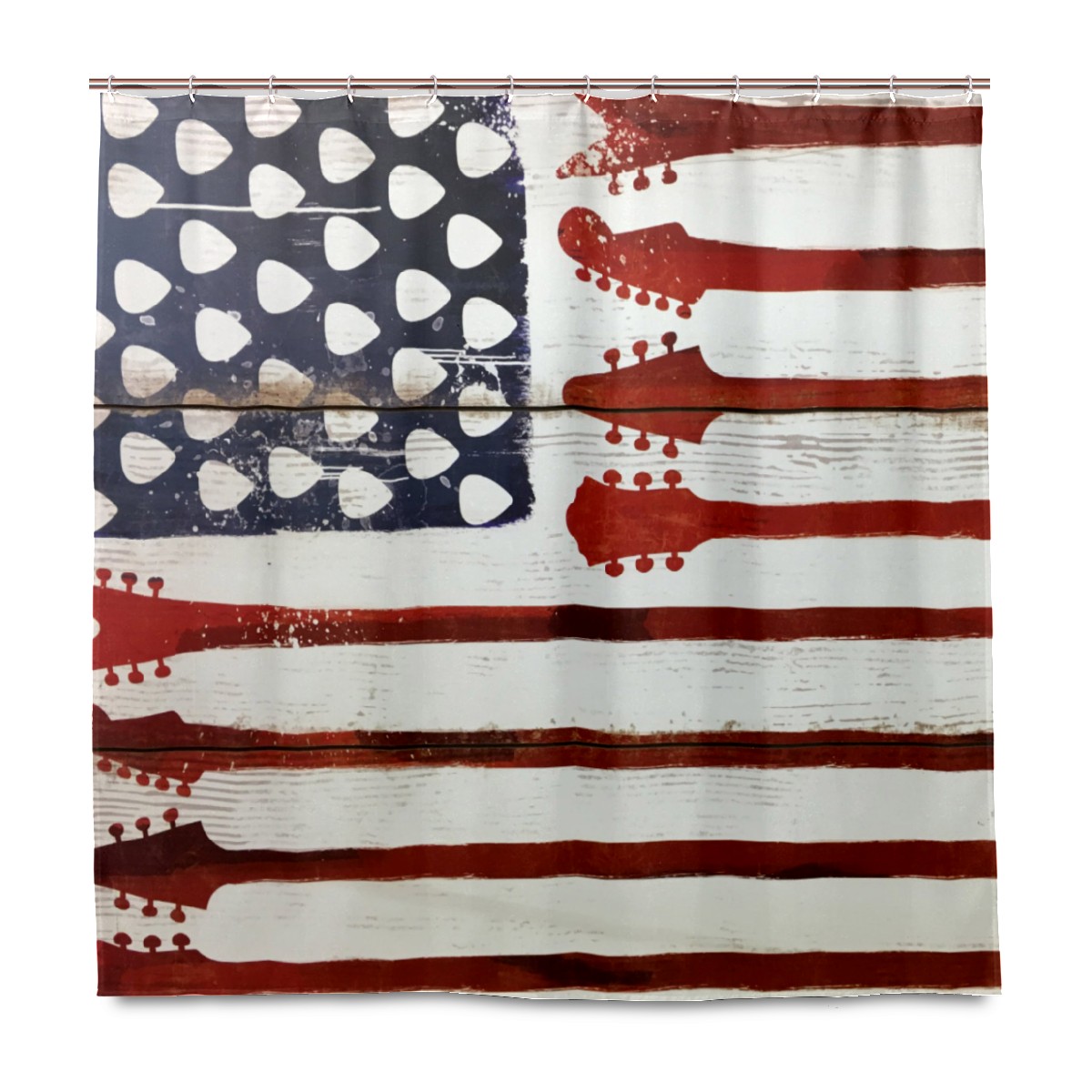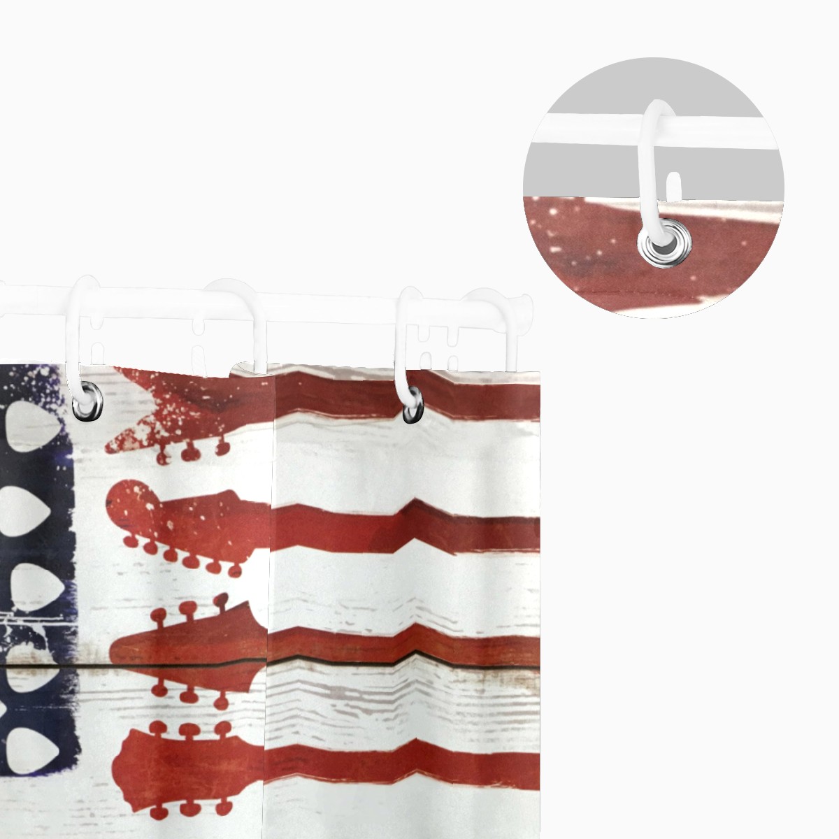Shower Curtains for Bathroom American Flag Patriotic Guitar Music Waterproof Polyester Fabric 60 x 72 inches Home Decor Bathroom Curtains for Kids Girls Boys with 12 Hooks