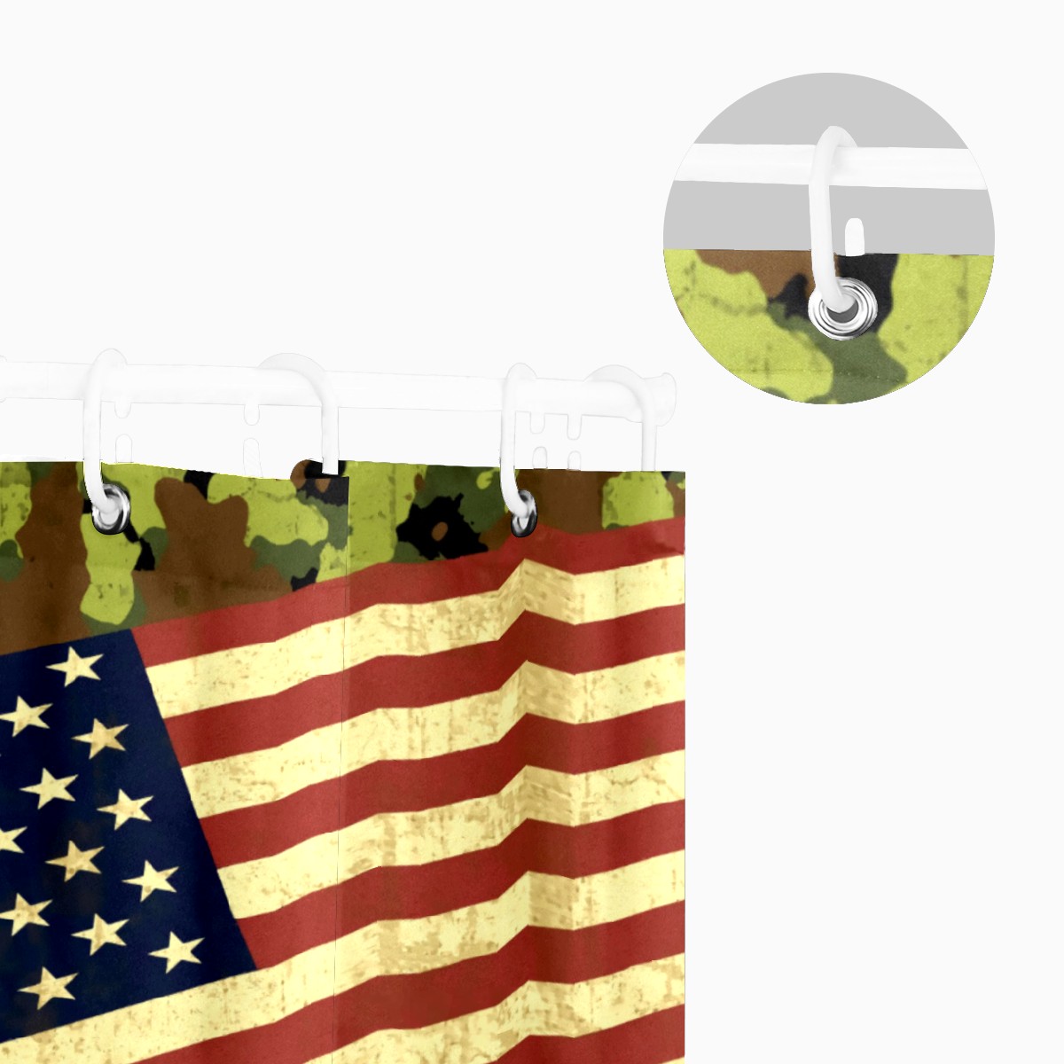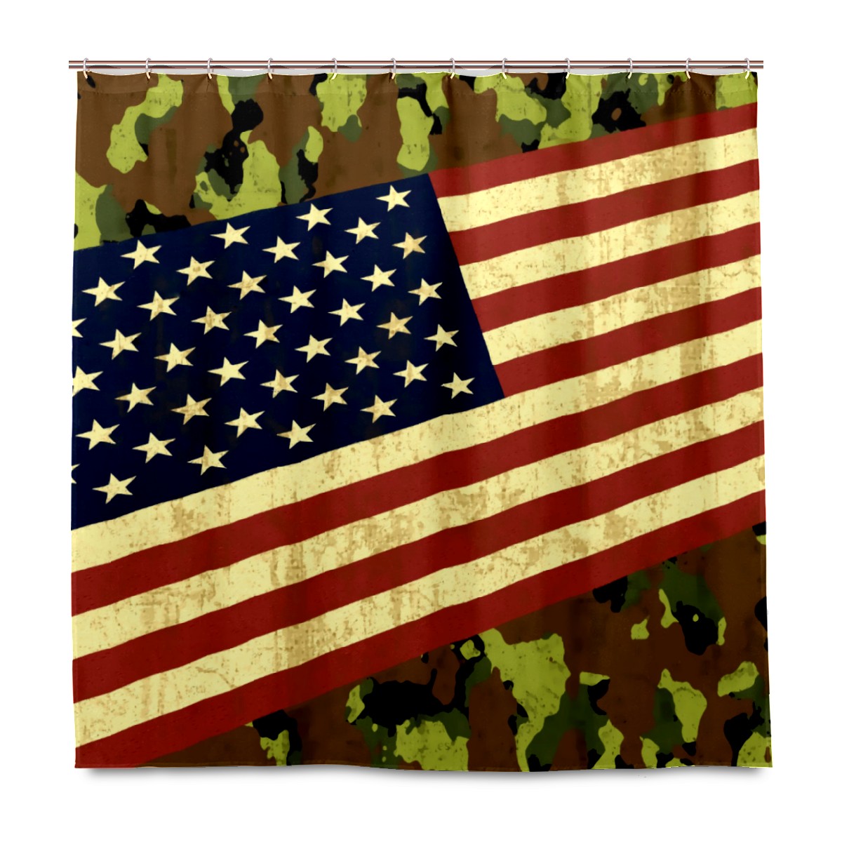 Shower Curtains for Bathroom American Flag Camo Waterproof Polyester Fabric 60 x 72 inches Home Decor Bathroom Curtains for Kids Girls Boys with 12 Hooks