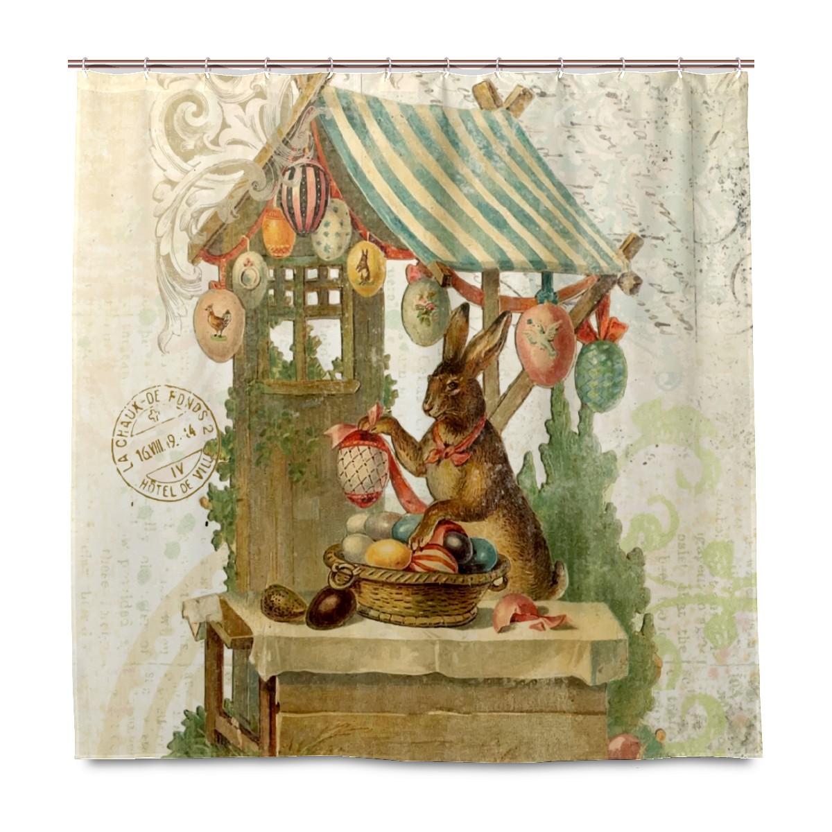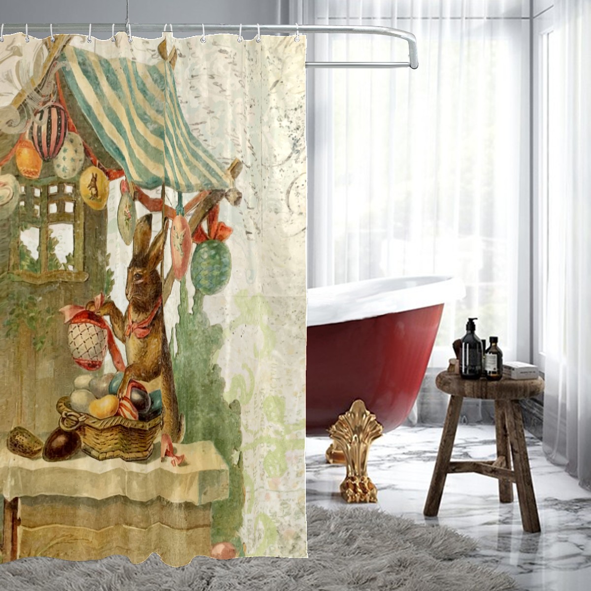 Shower Curtains for Bathroom Retro Easter Bunny Rabbit Waterproof Polyester Fabric 60 x 72 inches Home Decor Bathroom Curtains for Kids Girls Boys with 12 Hooks