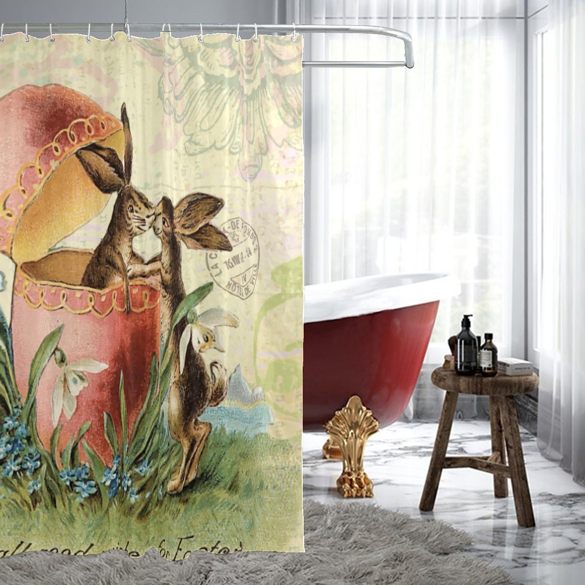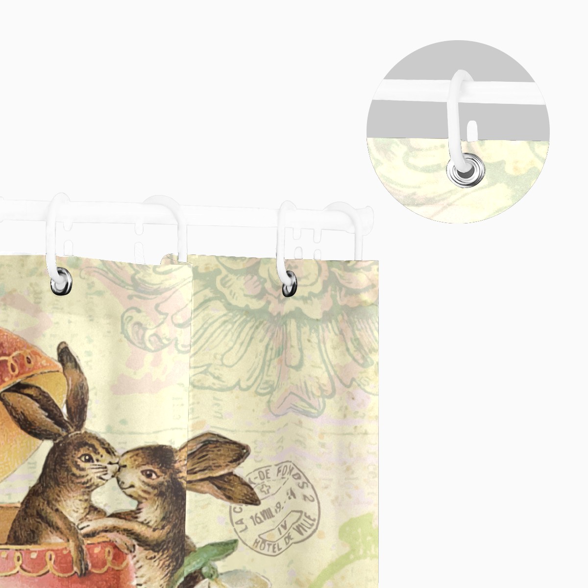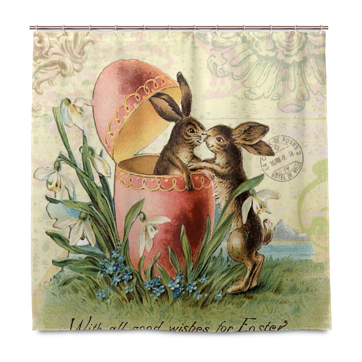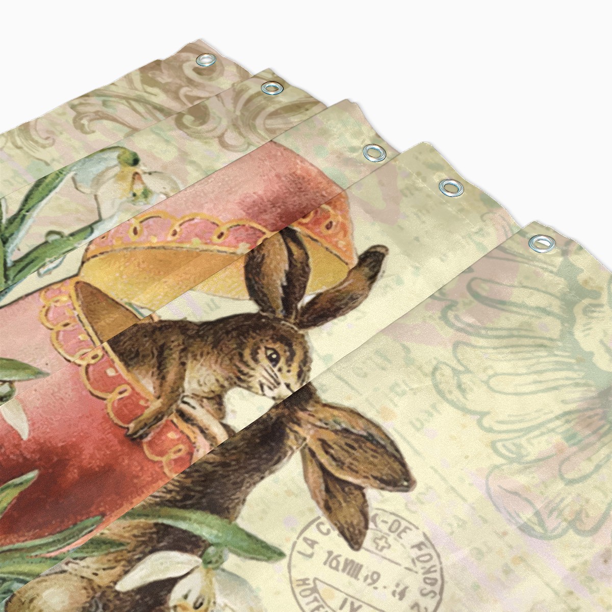 Shower Curtains for Bathroom Vintage French Easter Bunny Waterproof Polyester Fabric 60 x 72 inches Home Decor Bathroom Curtains for Kids Girls Boys with 12 Hooks