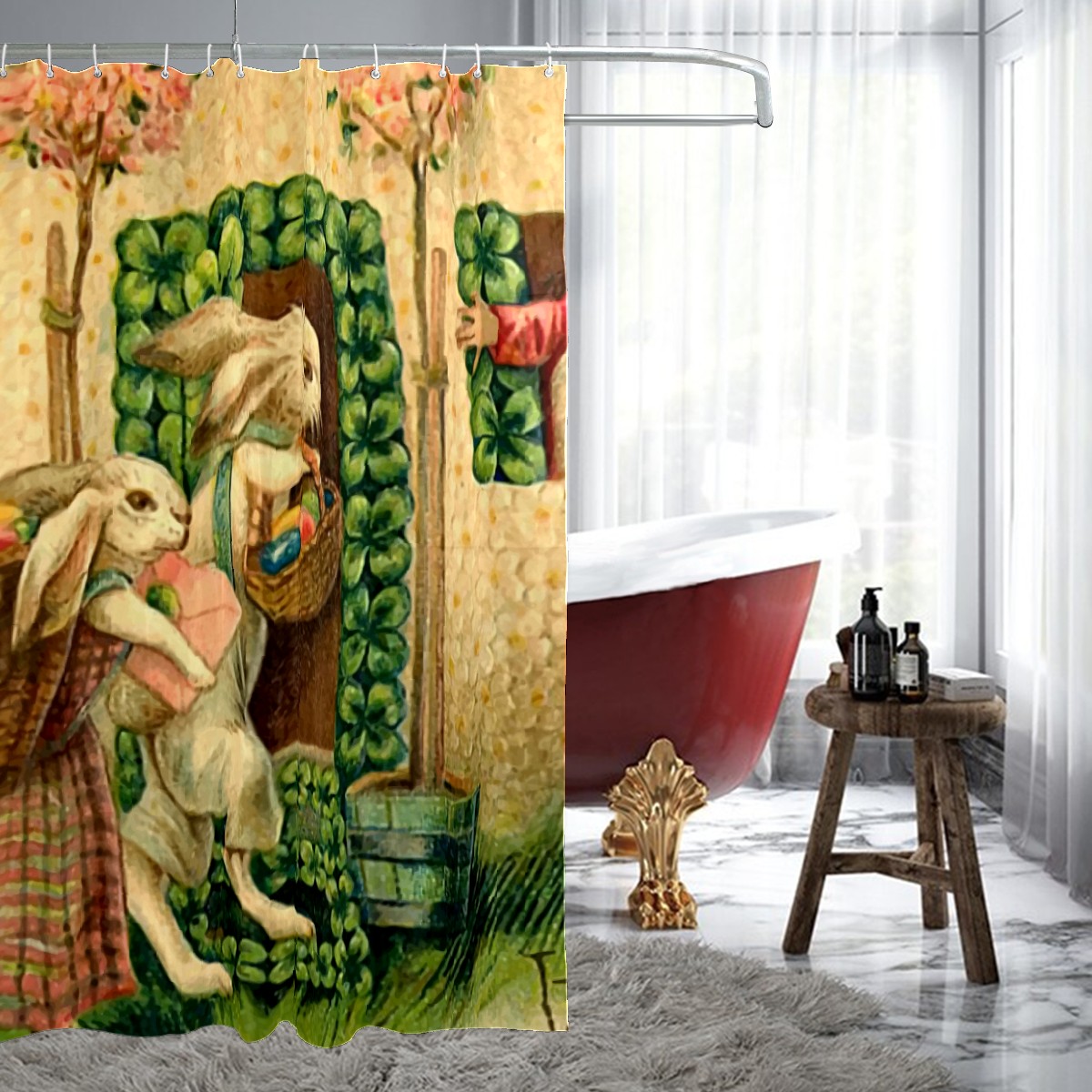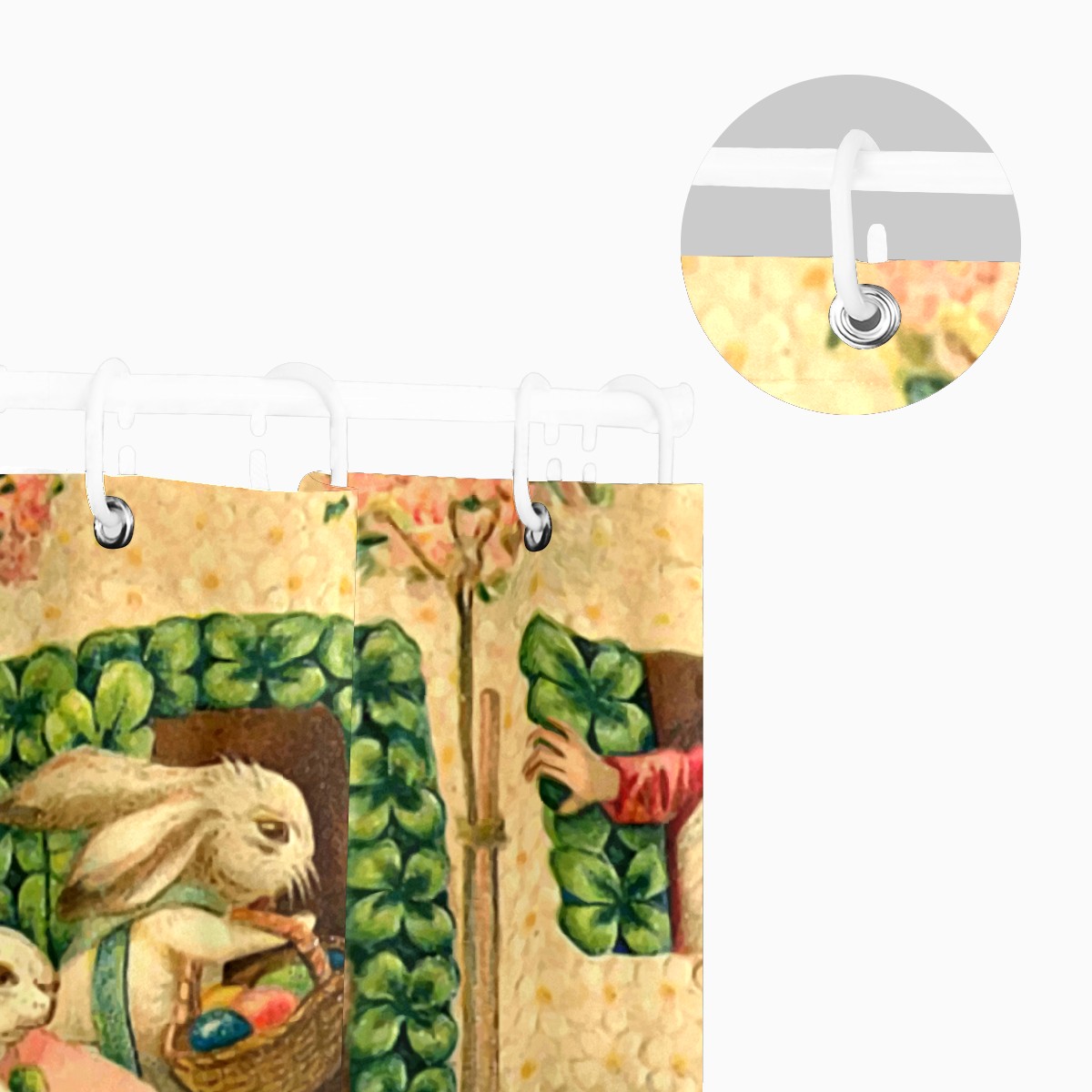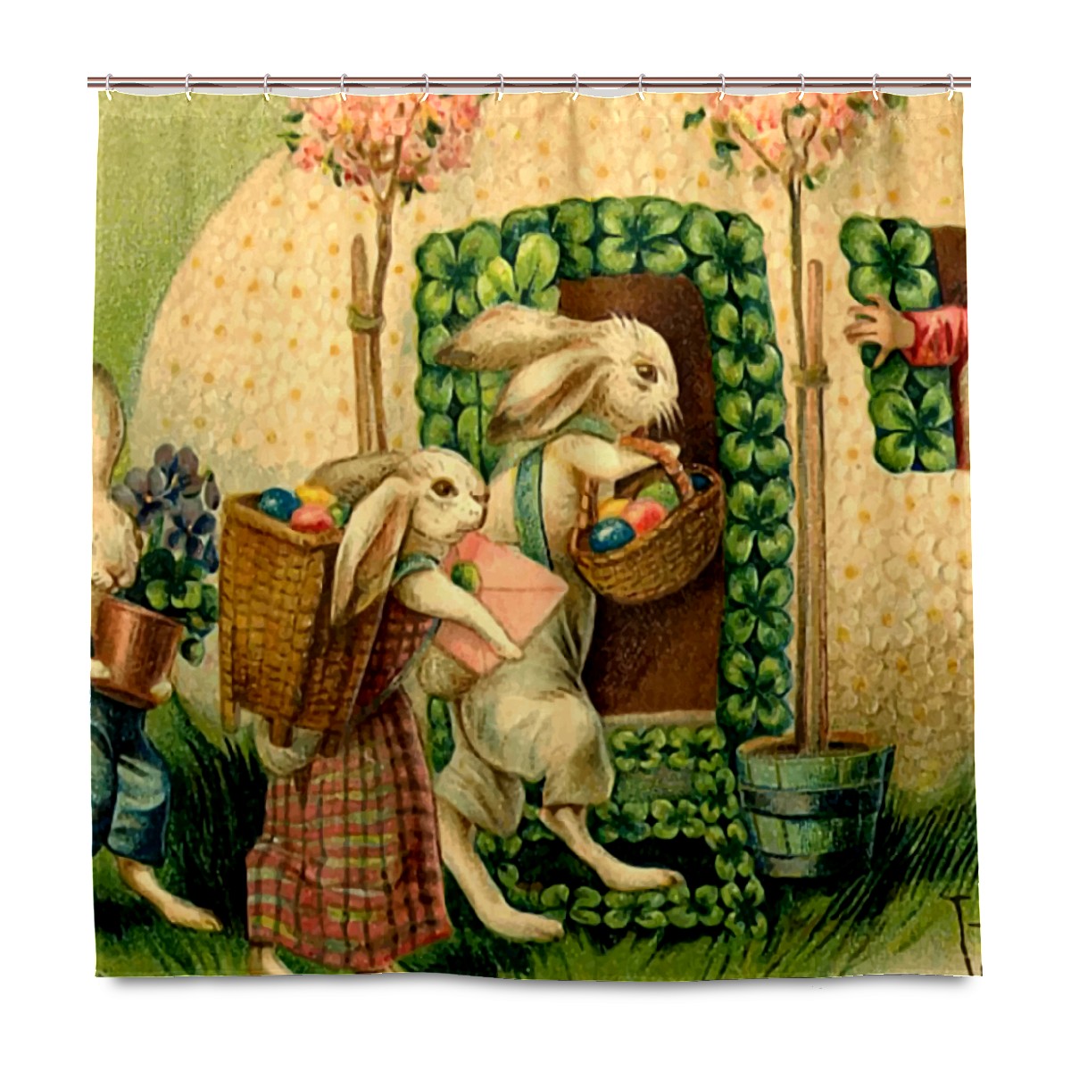 Shower Curtains for Bathroom Easter Retro Cute Bunny Rabbit Waterproof Polyester Fabric 60 x 72 inches Home Decor Bathroom Curtains for Kids Girls Boys with 12 Hooks
