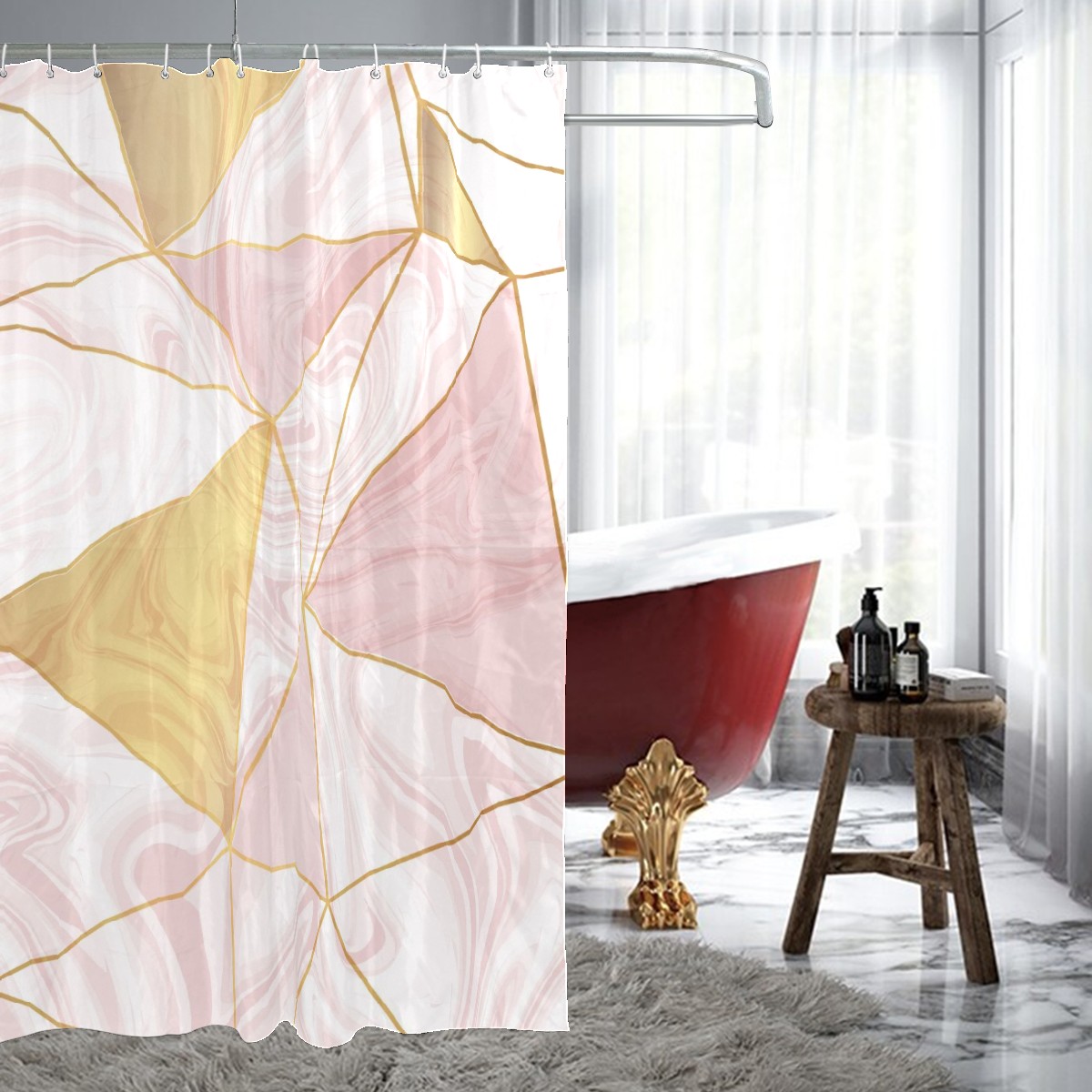 Shower Curtains for Bathroom Pink Geometric Marble Waterproof Polyester Fabric 60 x 72 inches Home Decor Bathroom Curtains for Kids Girls Boys with 12 Hooks
