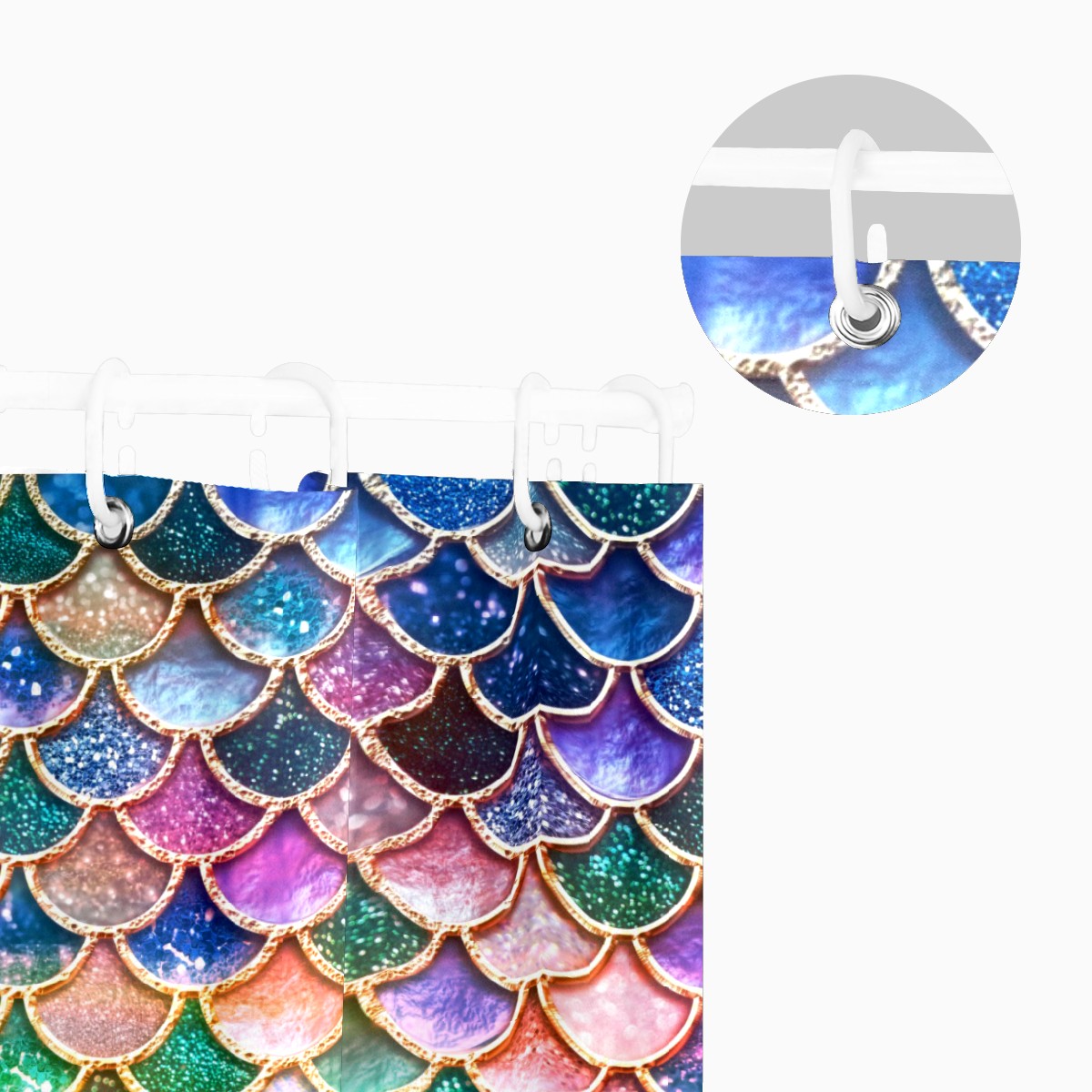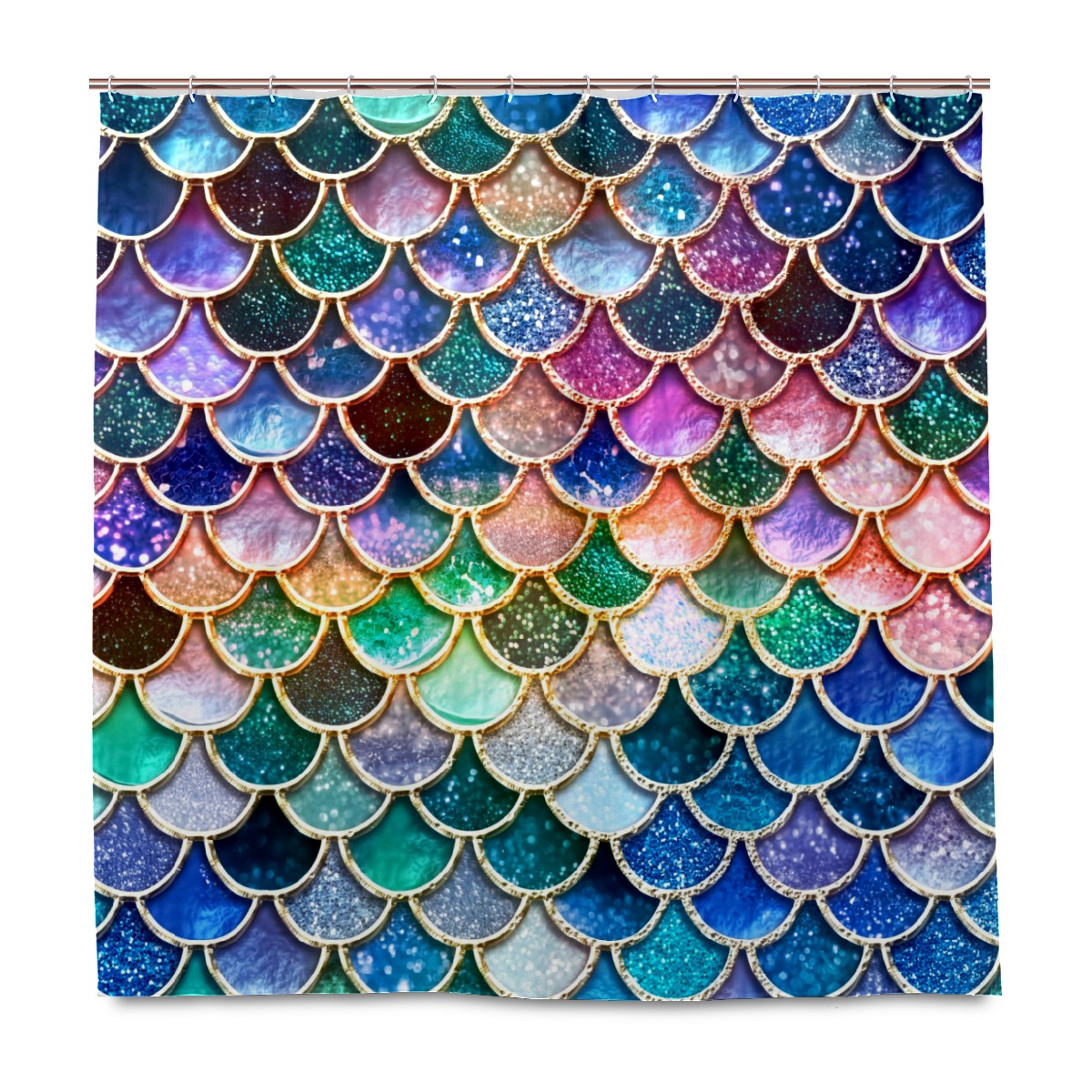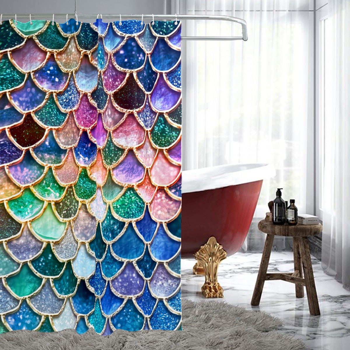 Shower Curtains for Bathroom Mermaid Scales Colorful Glitter Waterproof Polyester Fabric 60 x 72 inches Home Decor Bathroom Curtains for Kids Girls Boys with 12 Hooks