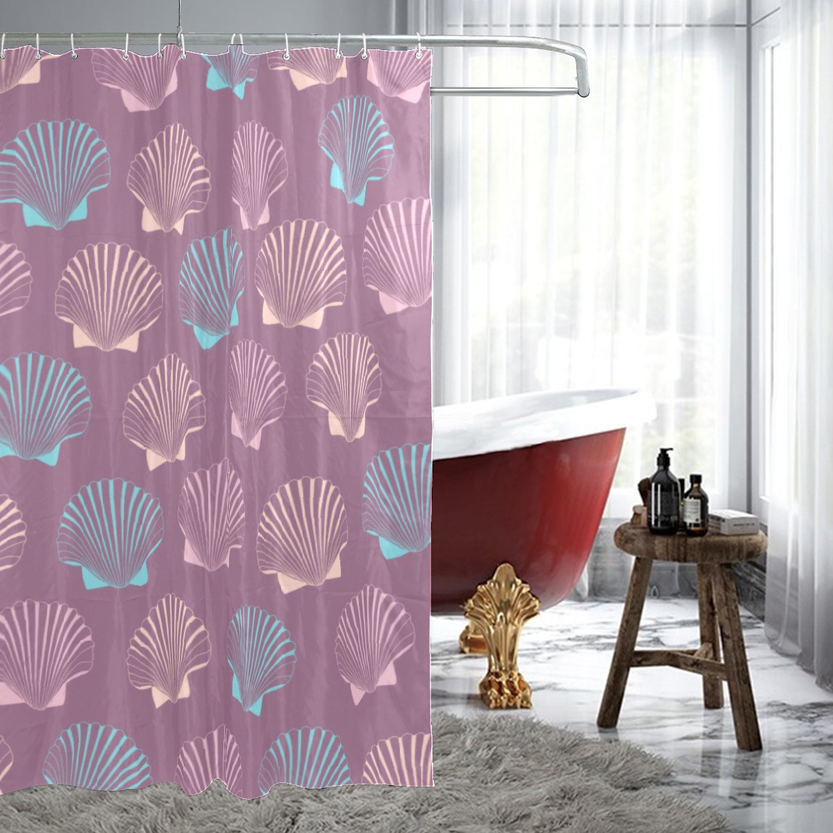 Shower Curtains for Bathroom Sea Pink Shell Pattern Waterproof Polyester Fabric 60 x 72 inches Home Decor Bathroom Curtains for Kids Girls Boys with 12 Hooks