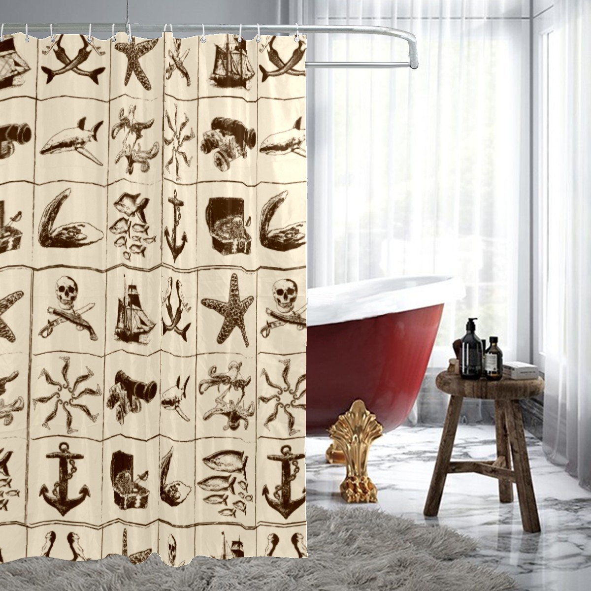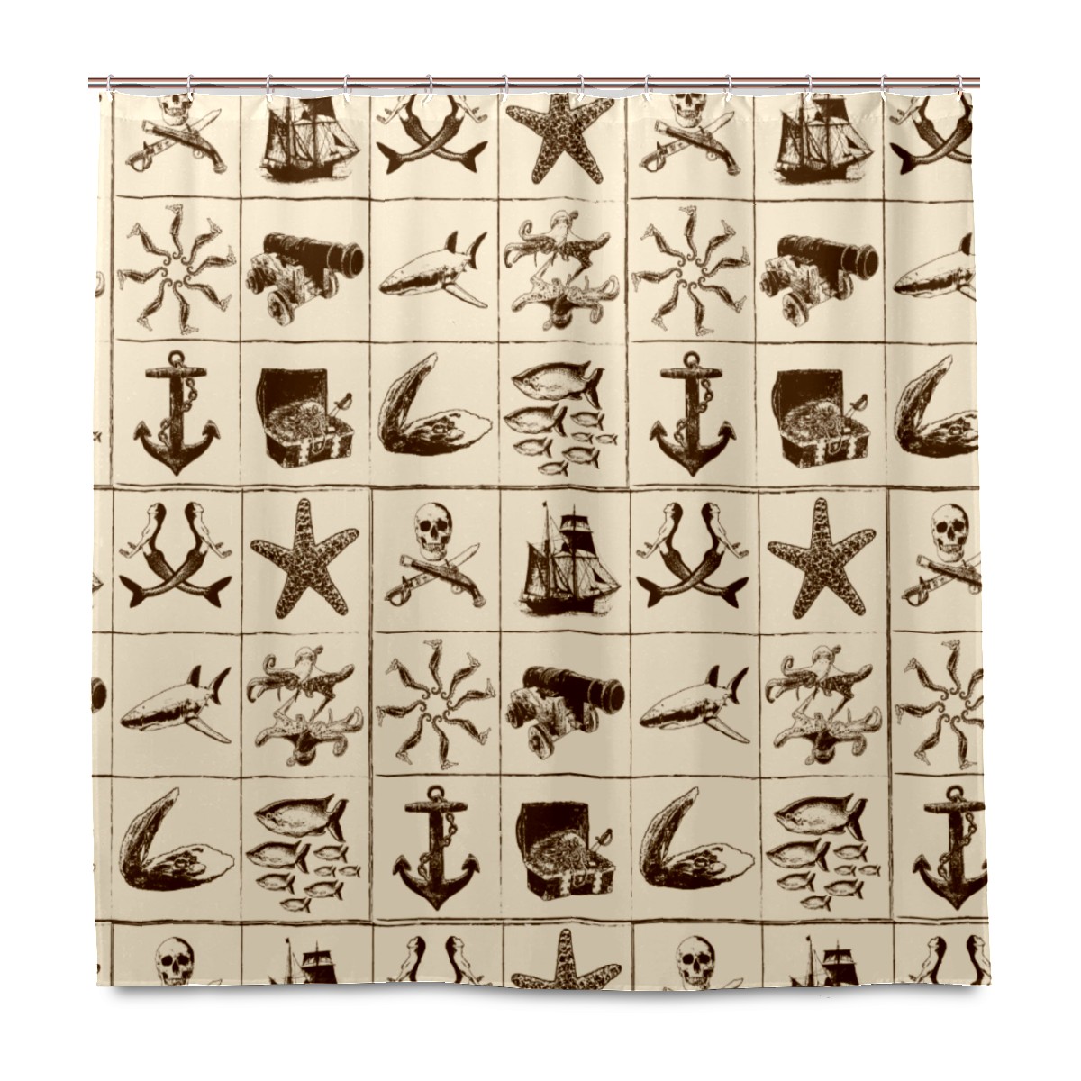 Shower Curtains for Bathroom Retro Nautical Anchor Rudder Skull Waterproof Polyester Fabric 60 x 72 inches Home Decor Bathroom Curtains for Kids Girls Boys with 12 Hooks