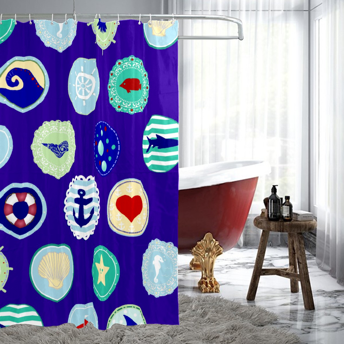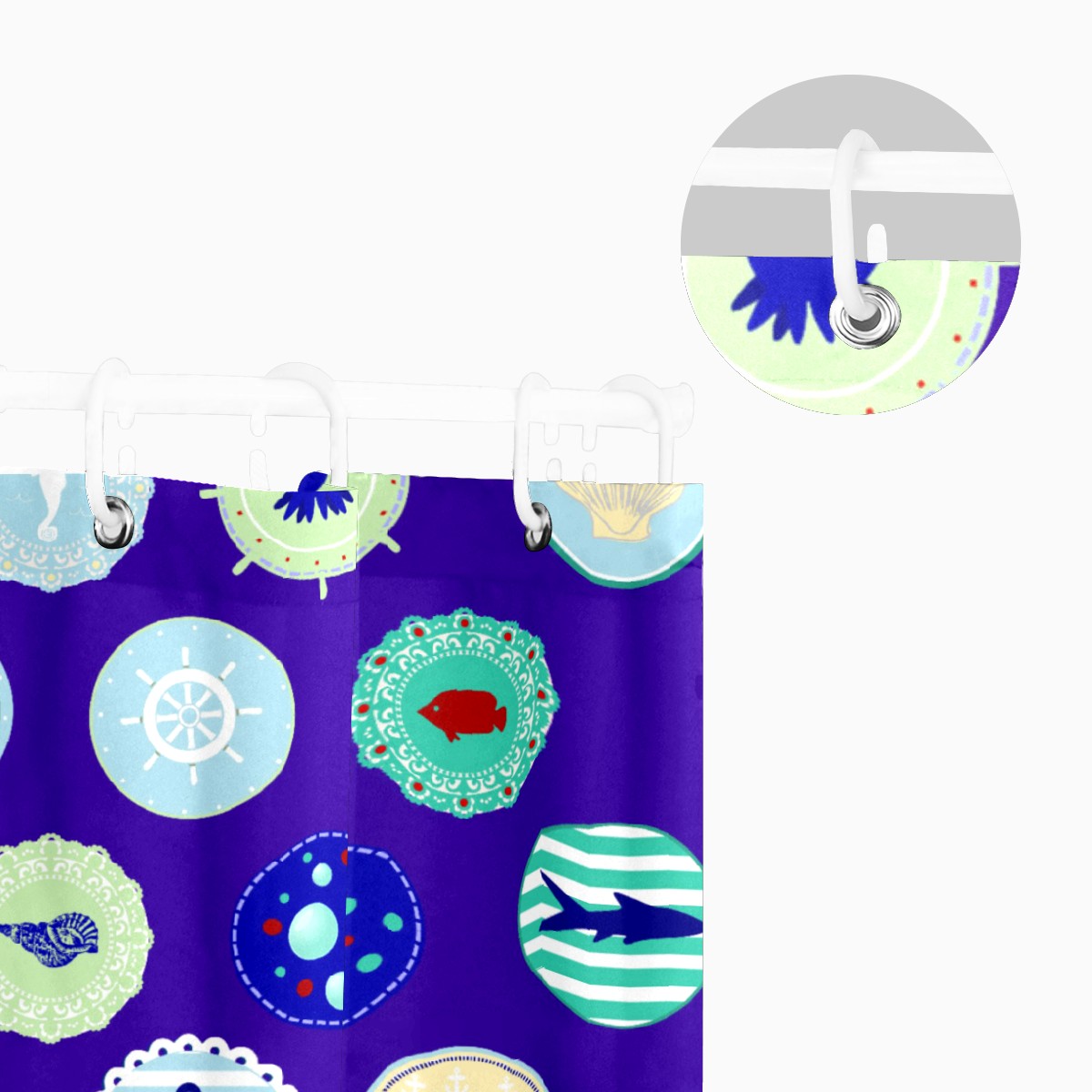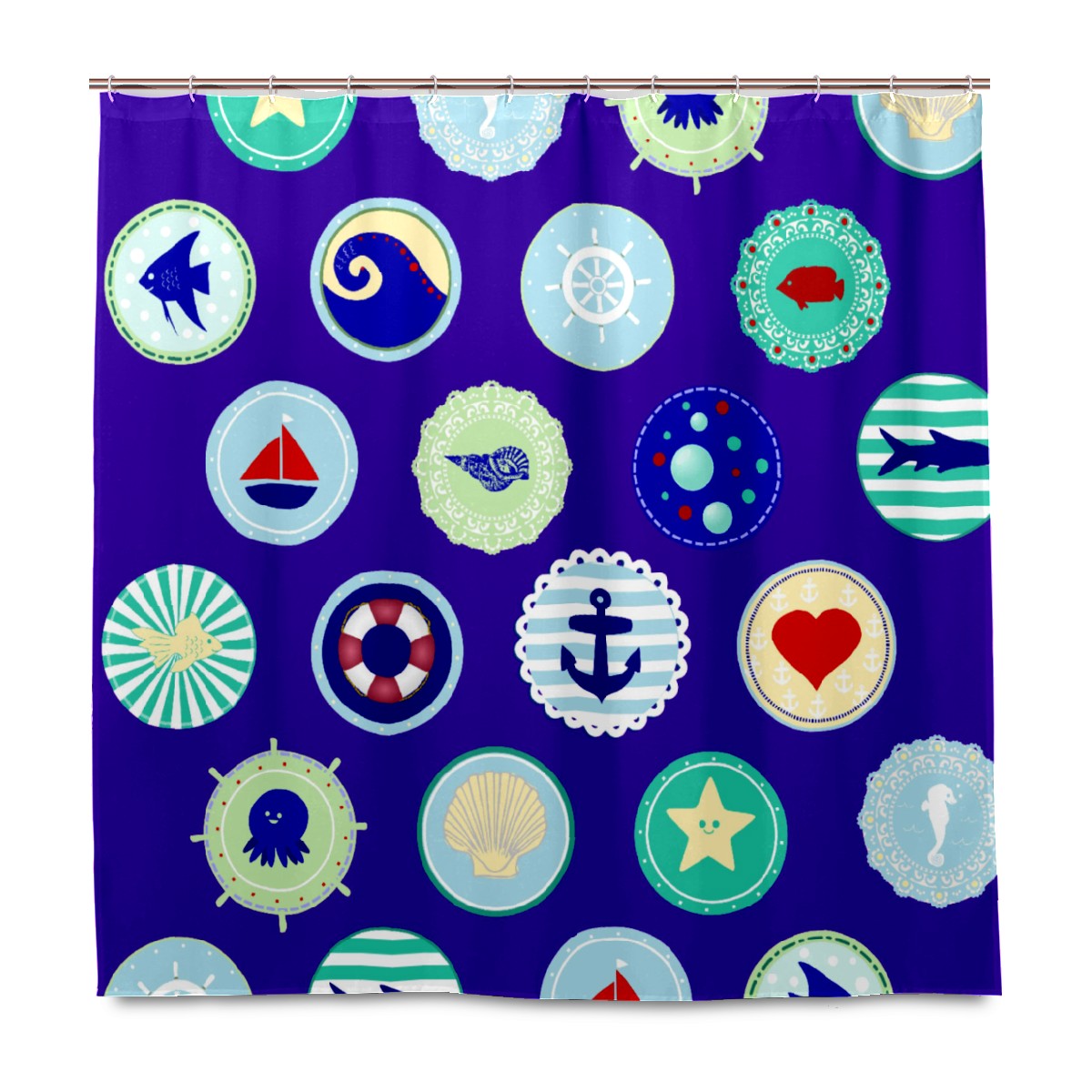 Shower Curtains for Bathroom Nautical Blue Sea Fish Seashell Waterproof Polyester Fabric 60 x 72 inches Home Decor Bathroom Curtains for Kids Girls Boys with 12 Hooks