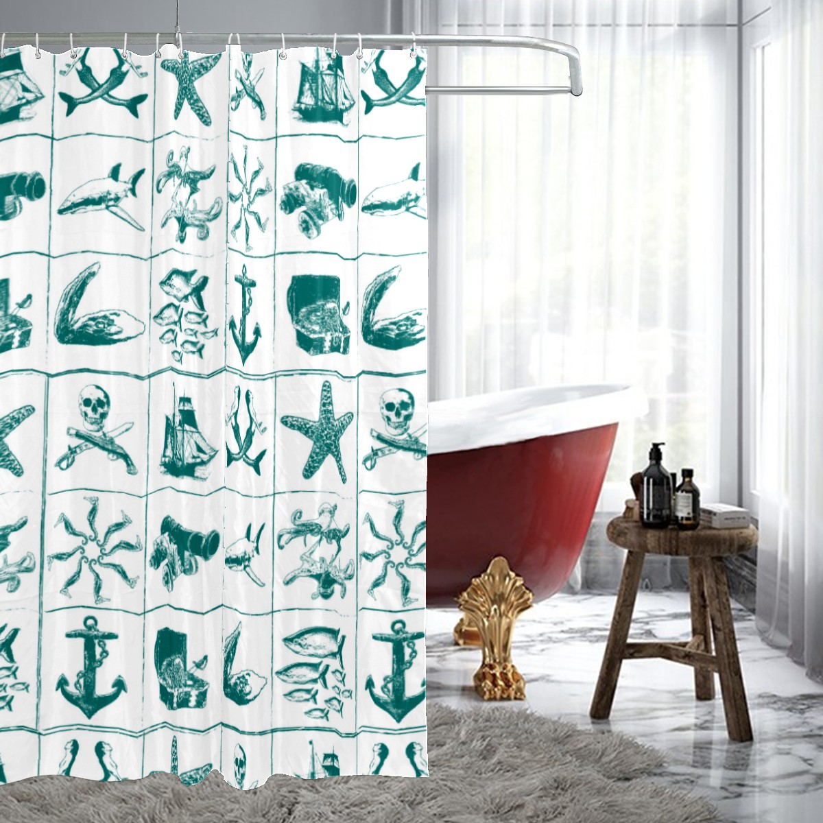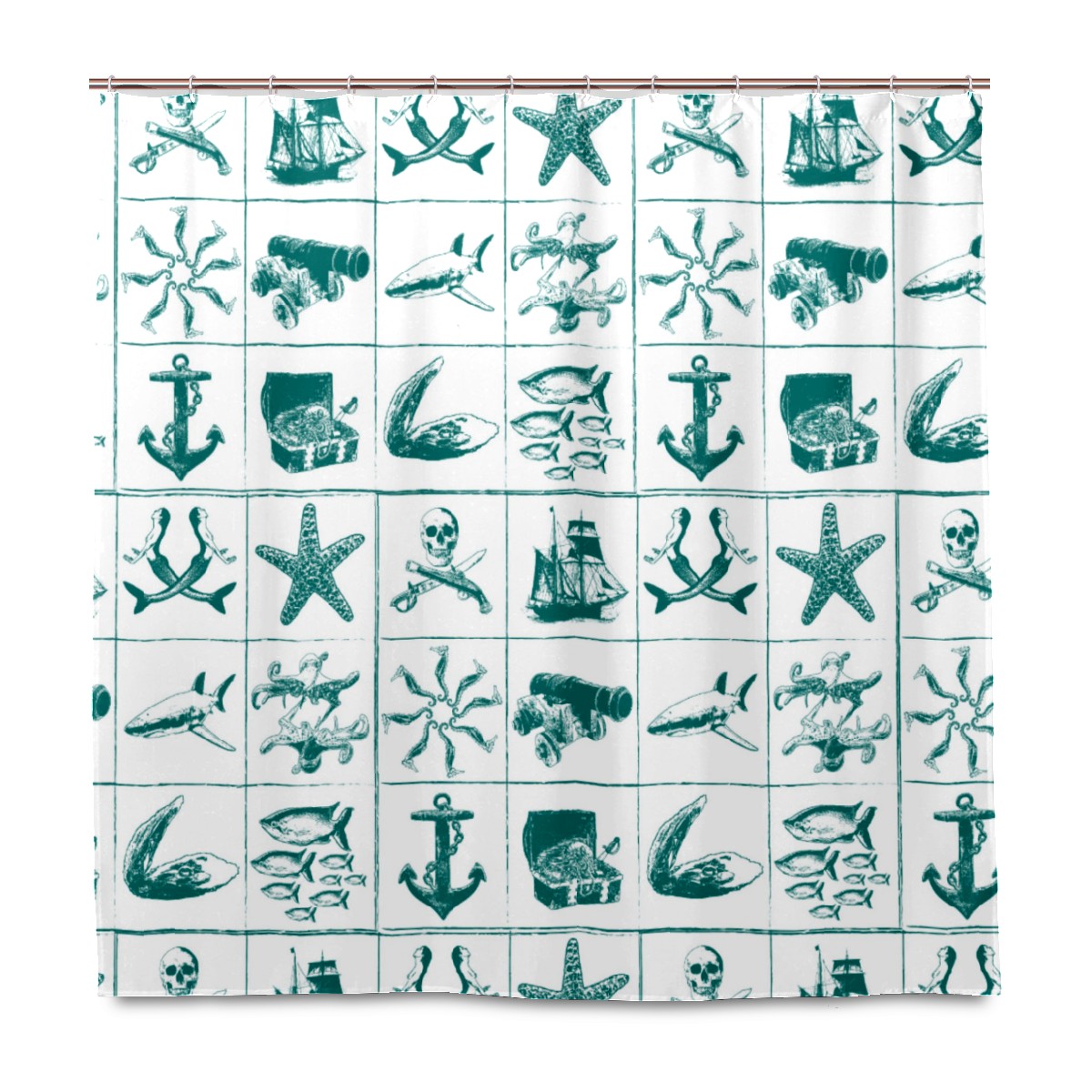 Shower Curtains for Bathroom Nautical Sea Anchor Skull Fish Waterproof Polyester Fabric 60 x 72 inches Home Decor Bathroom Curtains for Kids Girls Boys with 12 Hooks