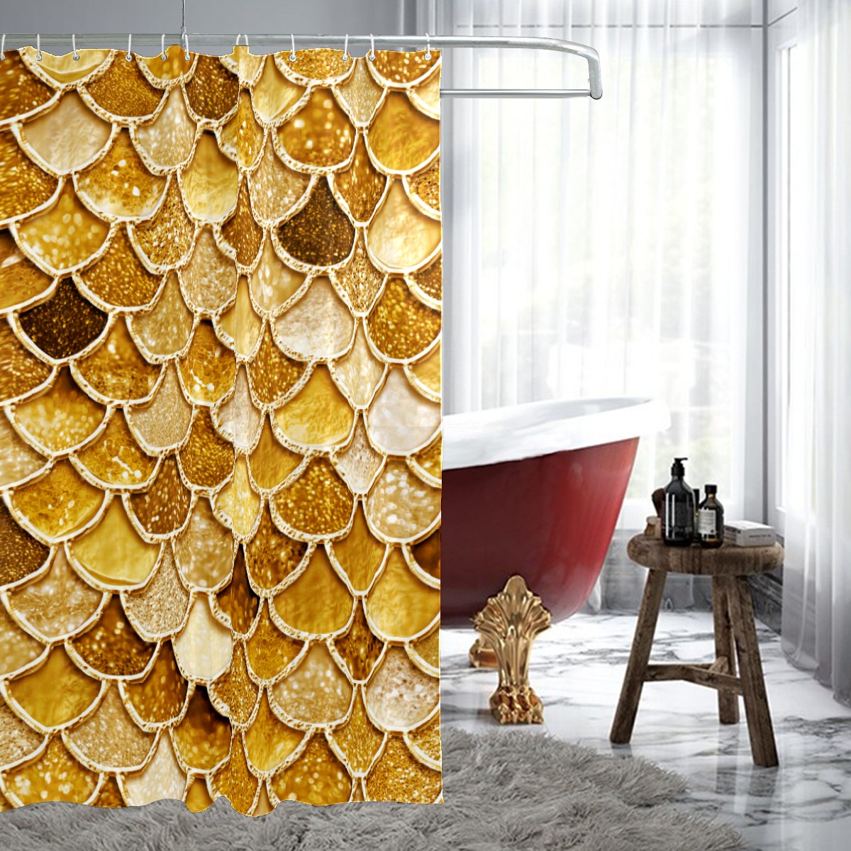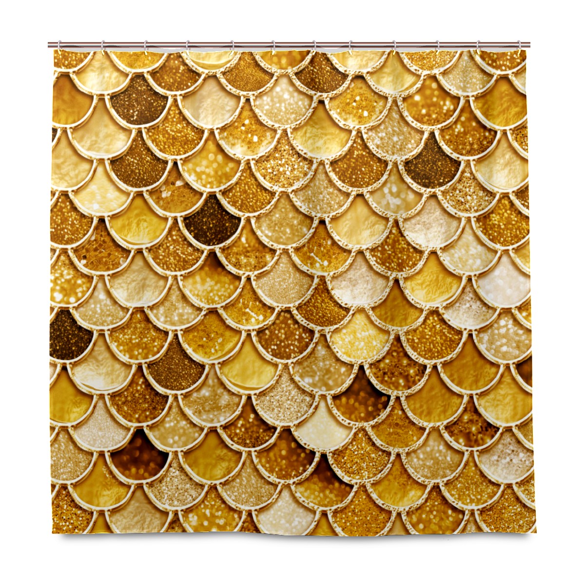 Shower Curtains for Bathroom Mermaid Scale Gold Glitter Waterproof Polyester Fabric 60 x 72 inches Home Decor Bathroom Curtains for Kids Girls Boys with 12 Hooks