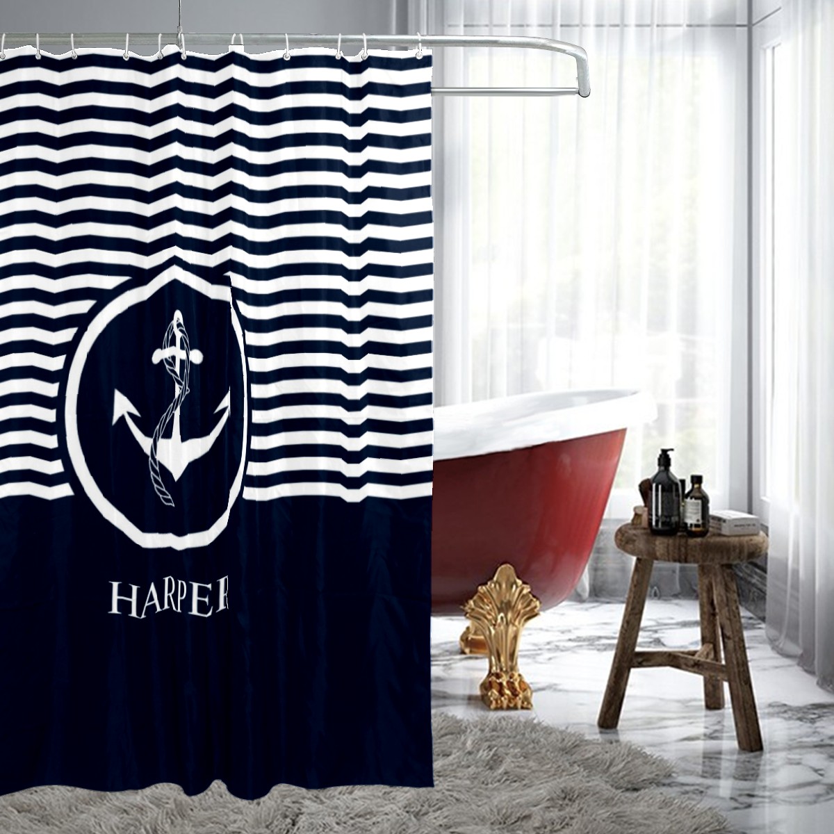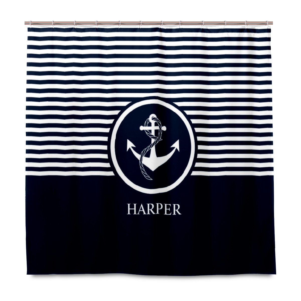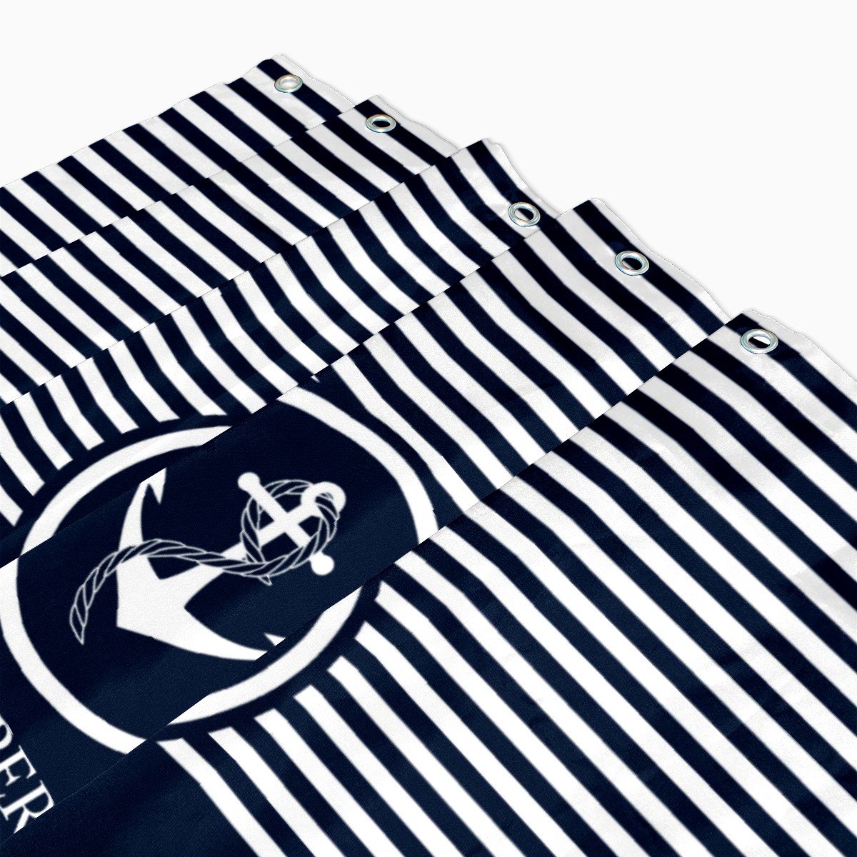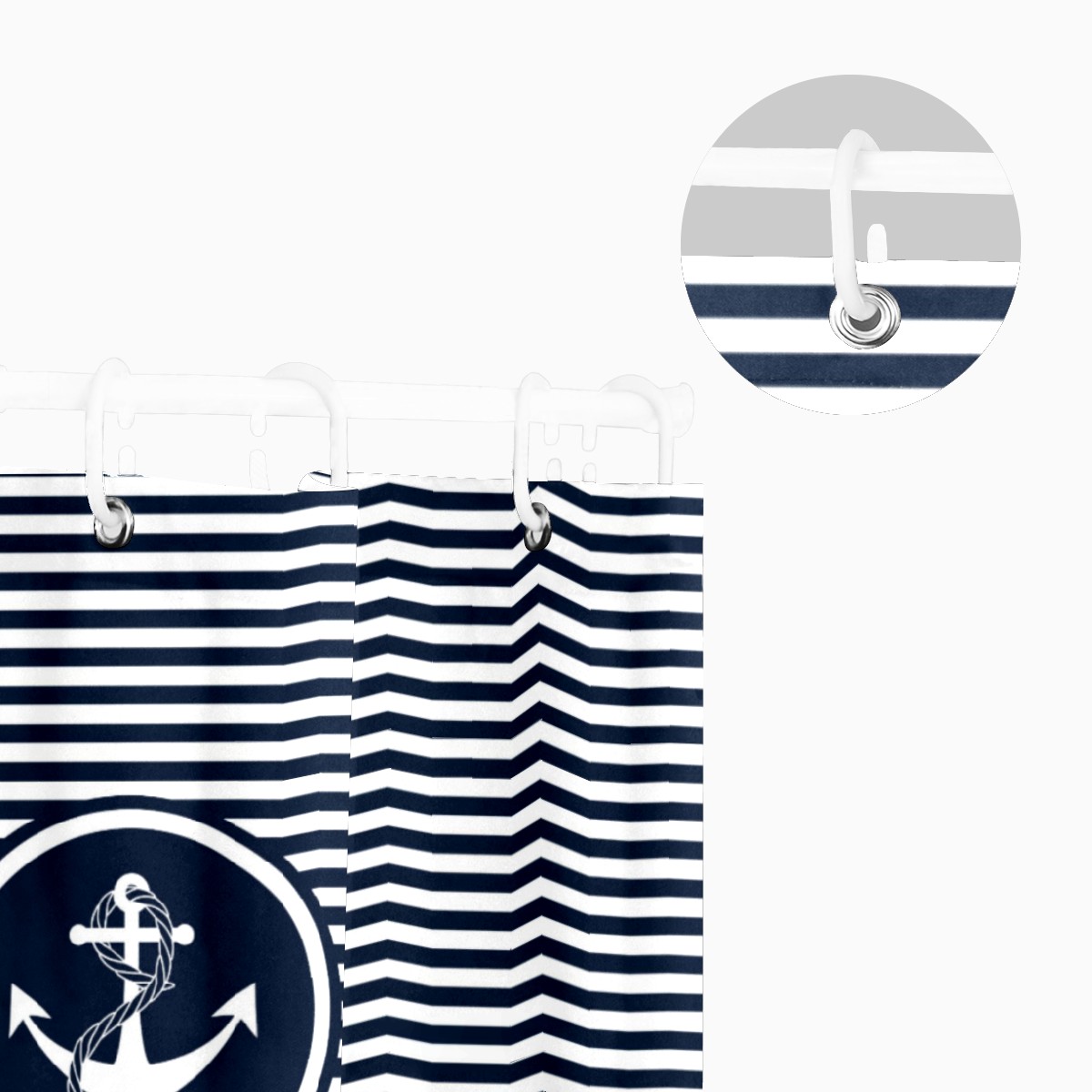 Shower Curtains for Bathroom Nautical Anchor Stripes Waterproof Polyester Fabric 60 x 72 inches Home Decor Bathroom Curtains for Kids Girls Boys with 12 Hooks