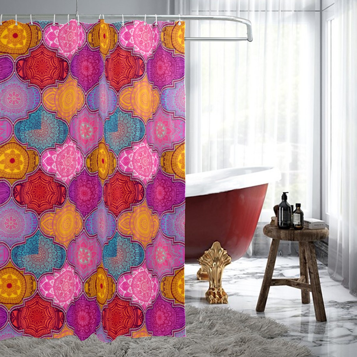 Shower Curtains for Bathroom Colorful Morocco Floral Pattern Waterproof Polyester Fabric 60 x 72 inches Home Decor Bathroom Curtains for Kids Girls Boys with 12 Hooks