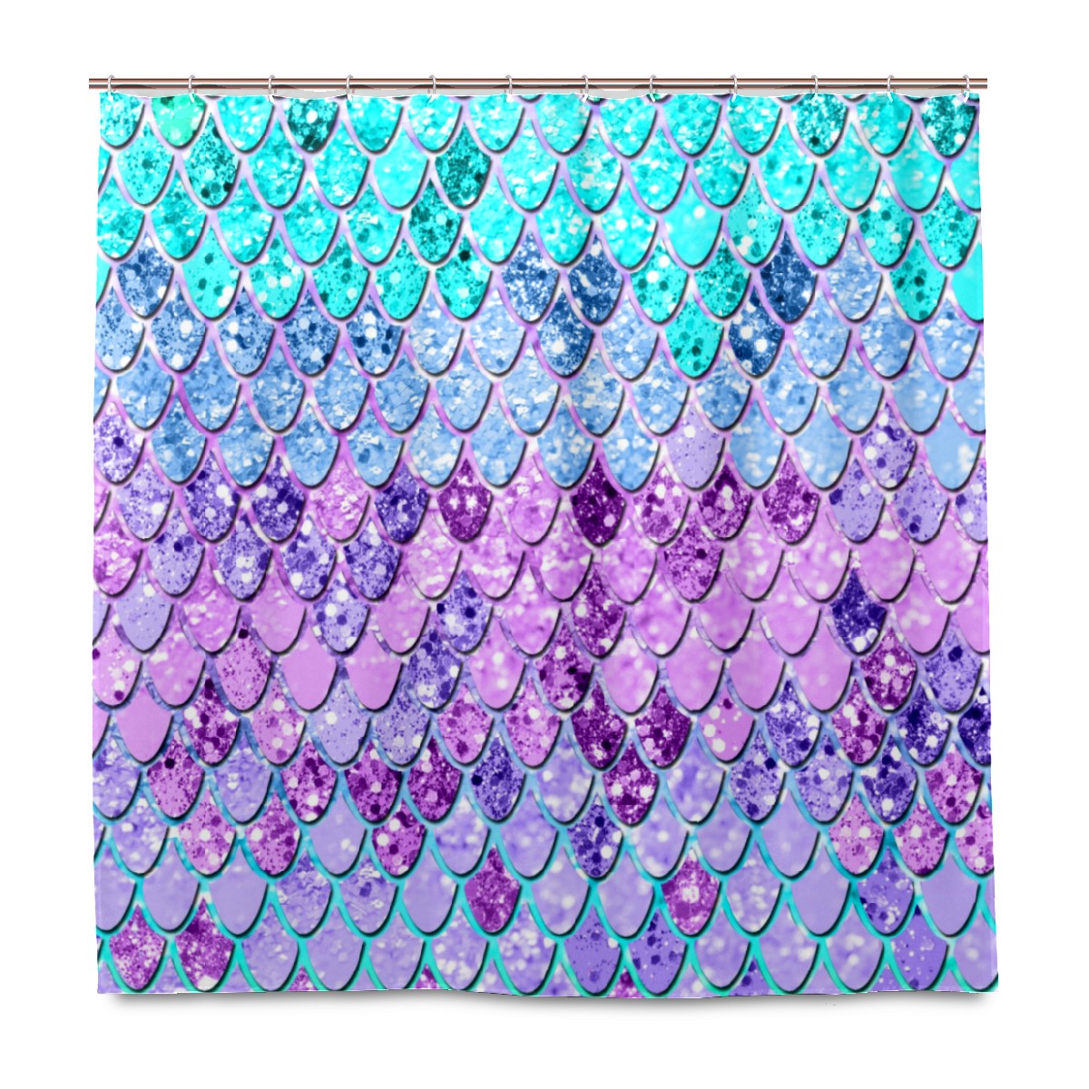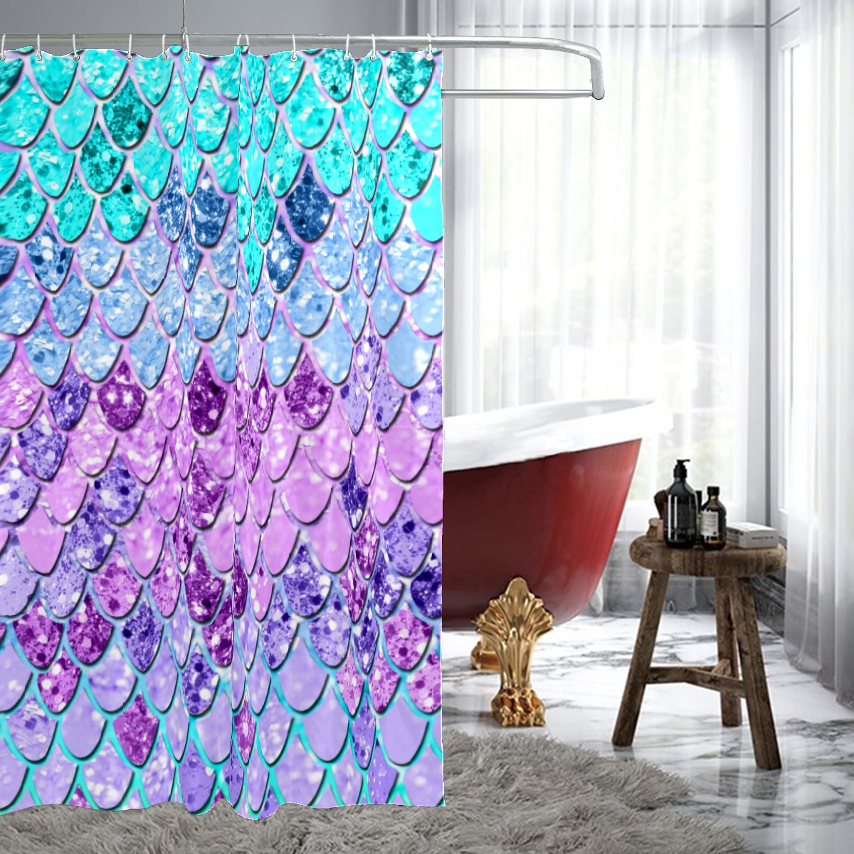 Shower Curtains for Bathroom Colorful Rainbow Mermaid Scale Waterproof Polyester Fabric 60 x 72 inches Home Decor Bathroom Curtains for Kids Girls Boys with 12 Hooks