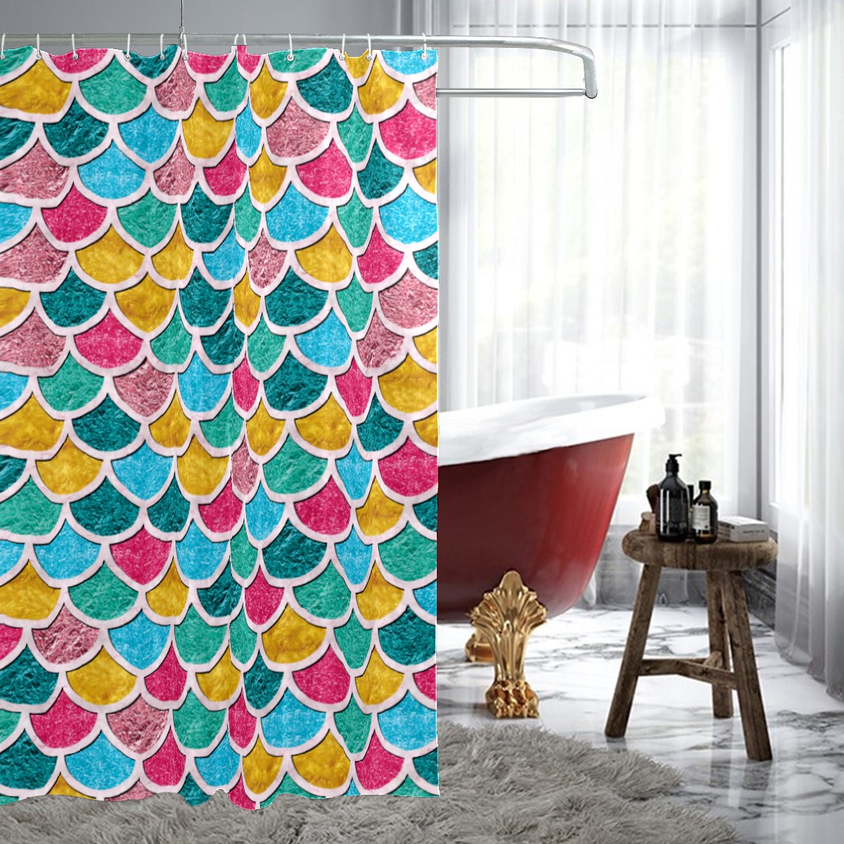 Shower Curtains for Bathroom Colorful Mermaid Scale Pattern Waterproof Polyester Fabric 60 x 72 inches Home Decor Bathroom Curtains for Kids Girls Boys with 12 Hooks