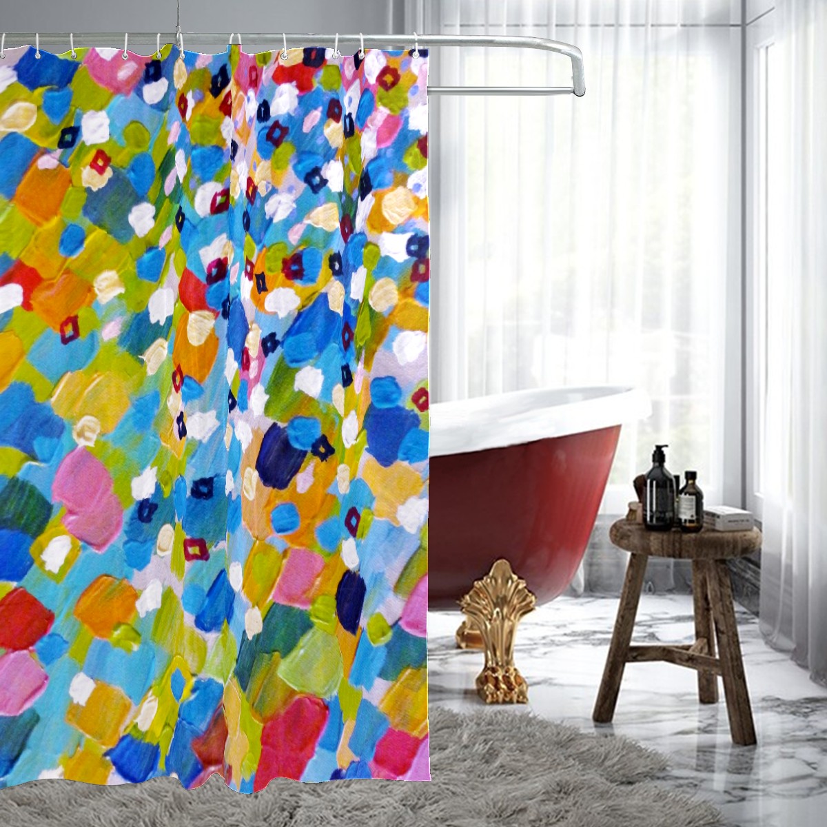 Shower Curtains for Bathroom Colorful Abstract Dot Waterproof Polyester Fabric 60 x 72 inches Home Decor Bathroom Curtains for Kids Girls Boys with 12 Hooks