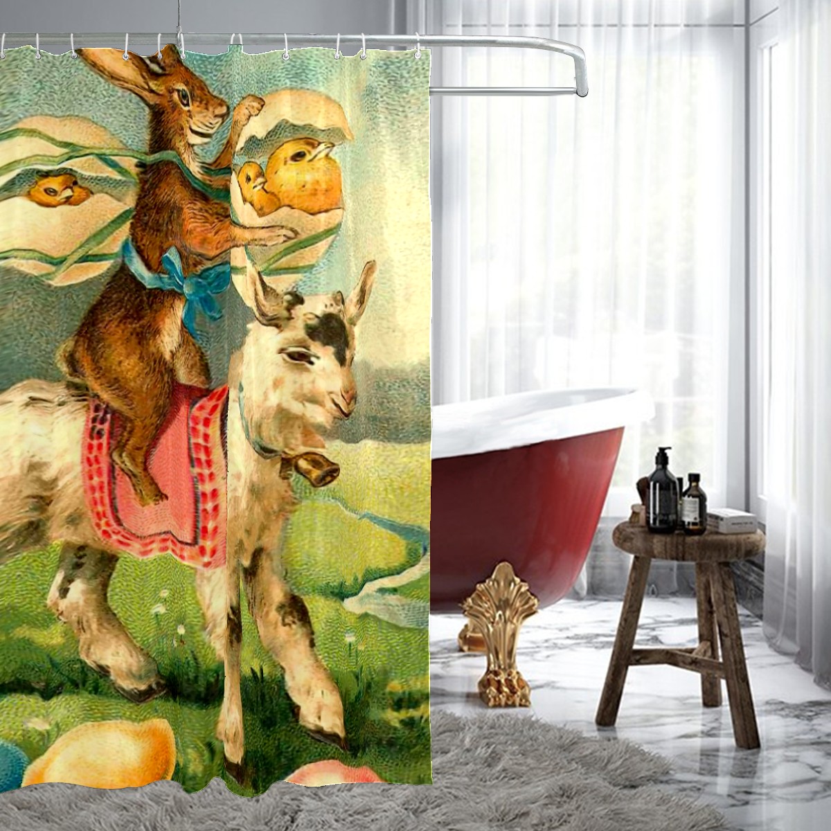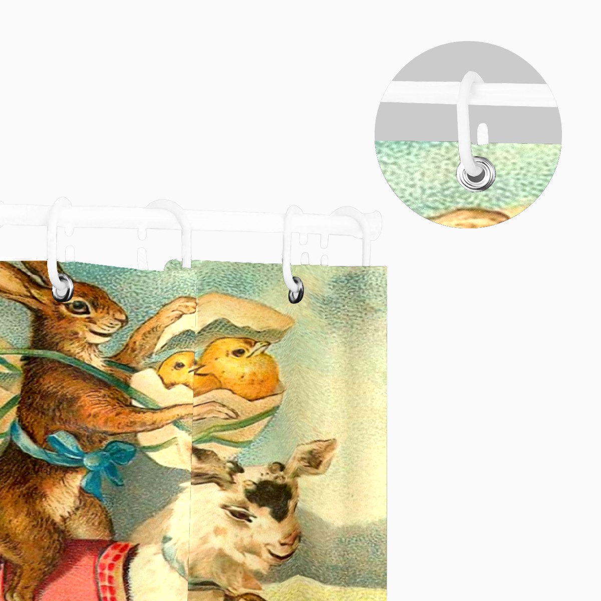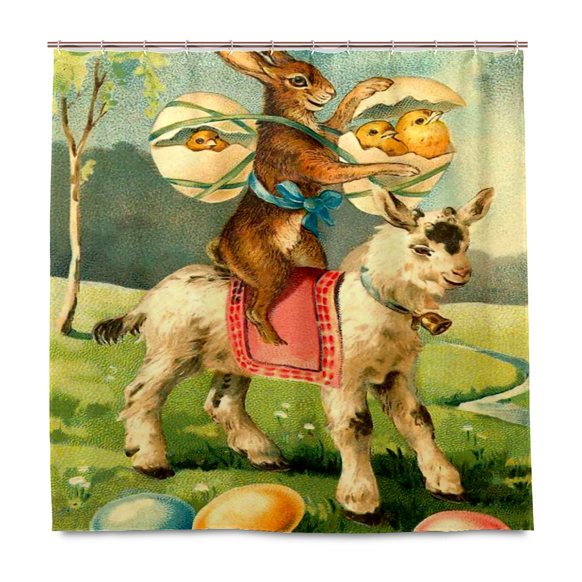 Shower Curtains for Bathroom Retro Easter Bunny Waterproof Polyester Fabric 60 x 72 inches Home Decor Bathroom Curtains for Kids Girls Boys with 12 Hooks