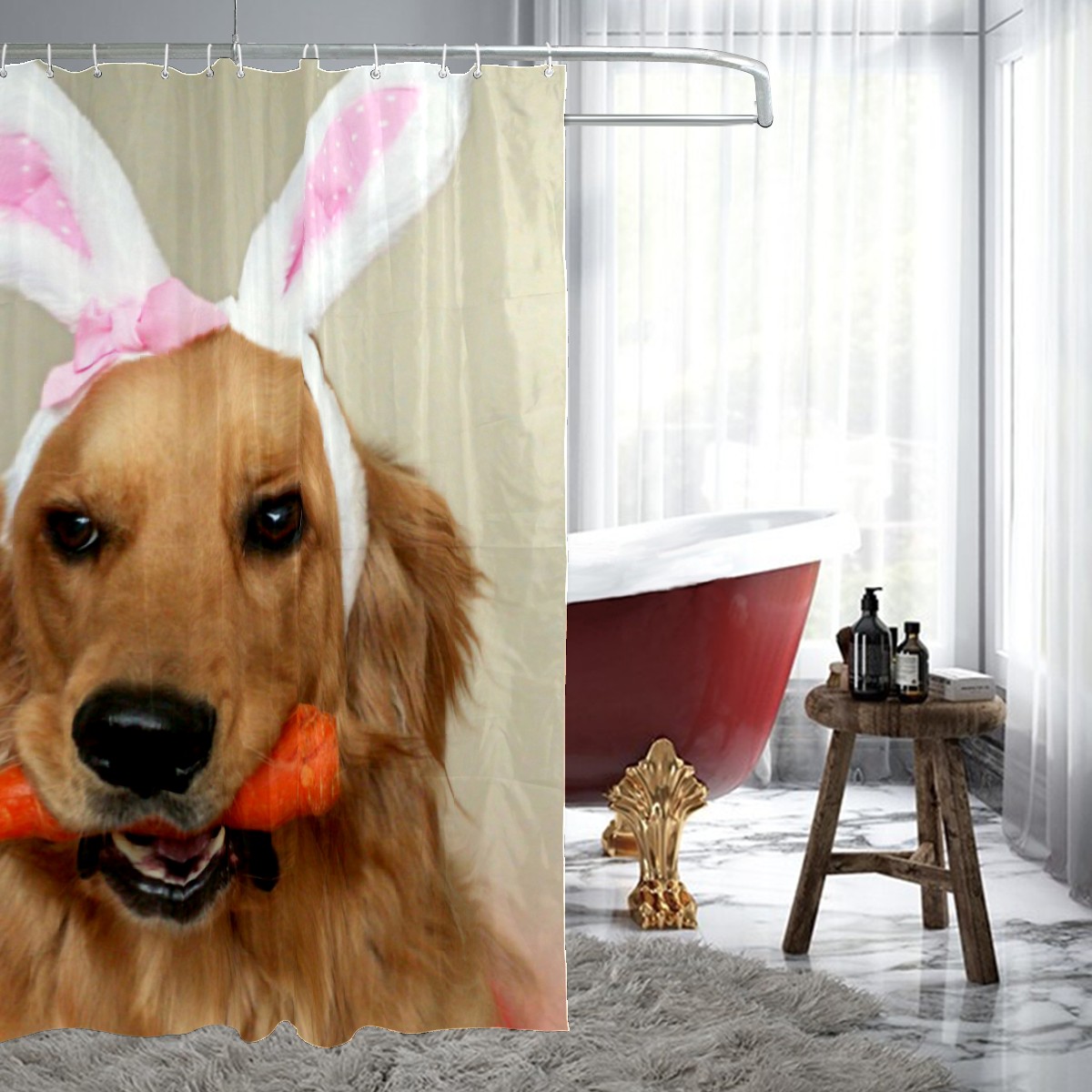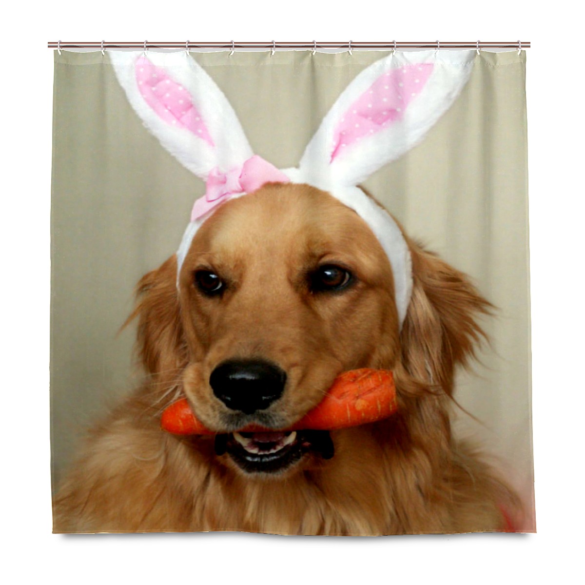Shower Curtains for Bathroom Golden Retriever Dog With Easter Bunny Ears Waterproof Polyester Fabric 60 x 72 inches Home Decor Bathroom Curtains for Kids Girls Boys with 12 Hooks