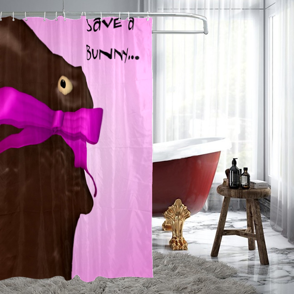 Shower Curtains for Bathroom Funny Chocolate Bunny Easter Waterproof Polyester Fabric 60 x 72 inches Home Decor Bathroom Curtains for Kids Girls Boys with 12 Hooks