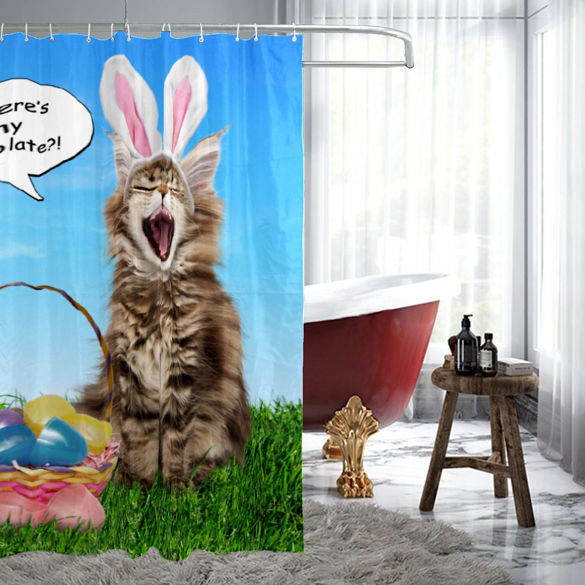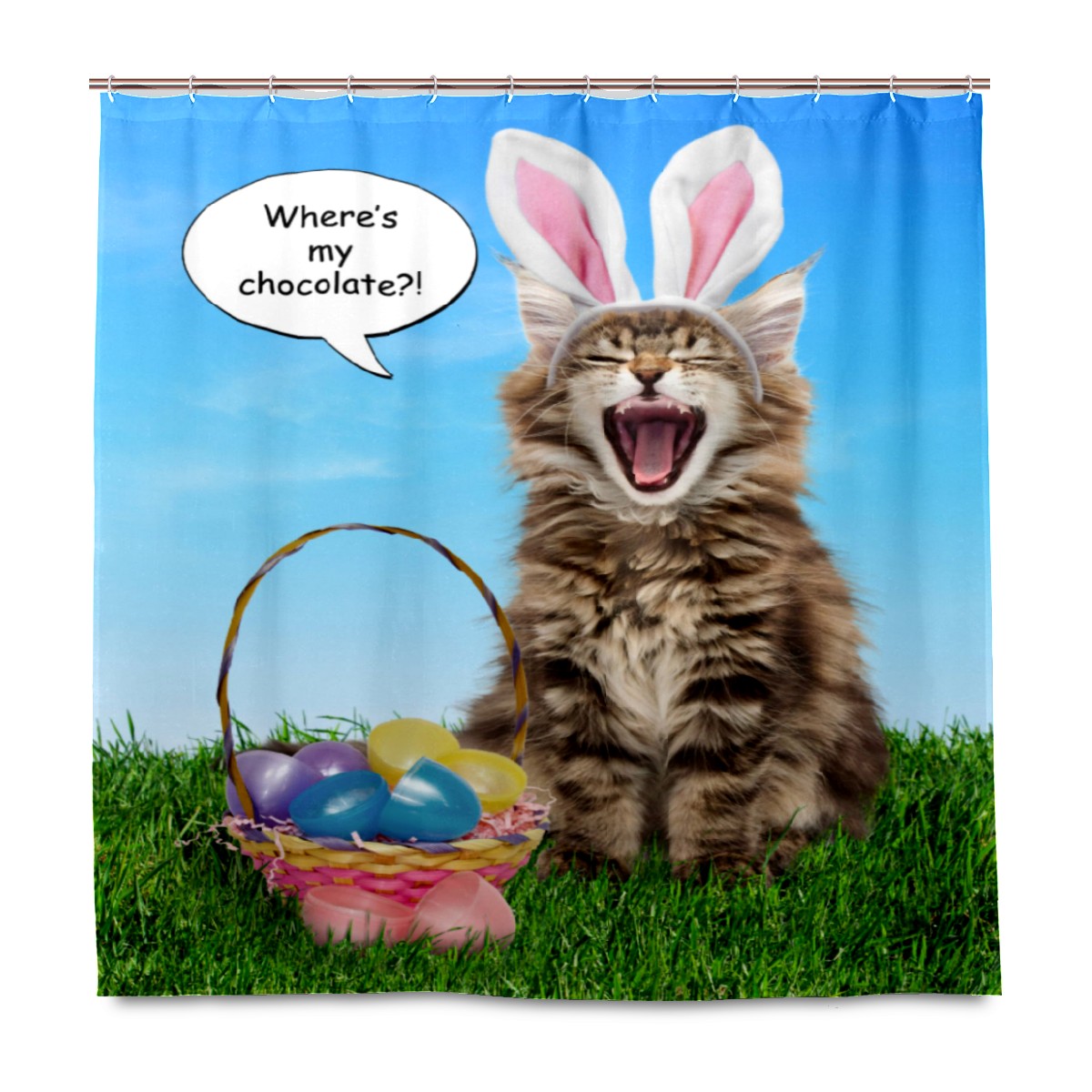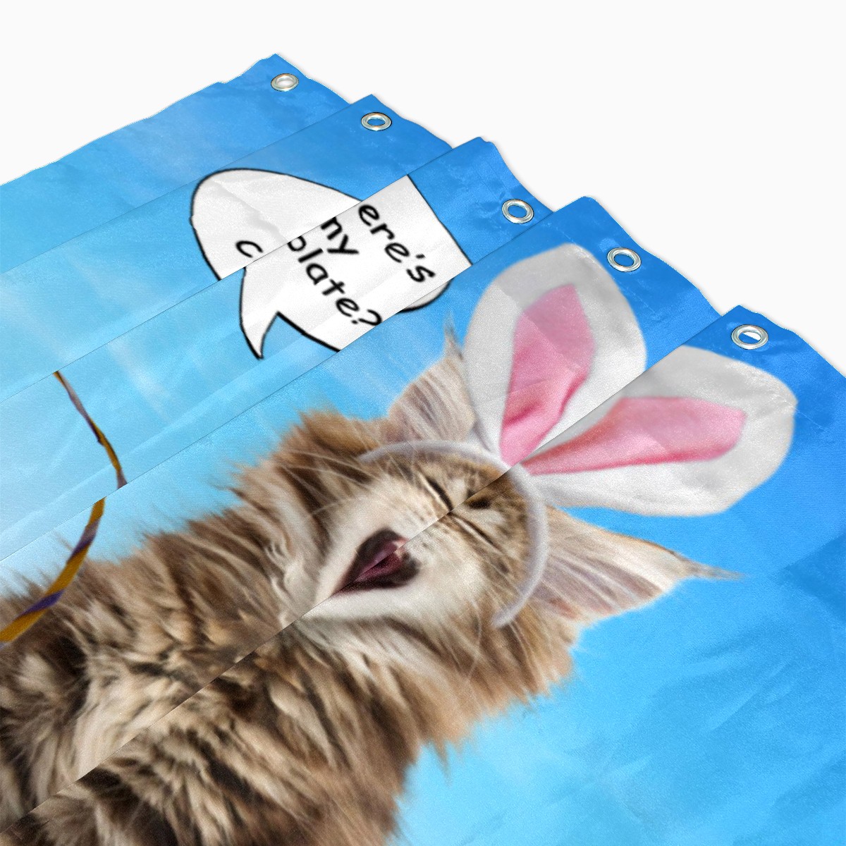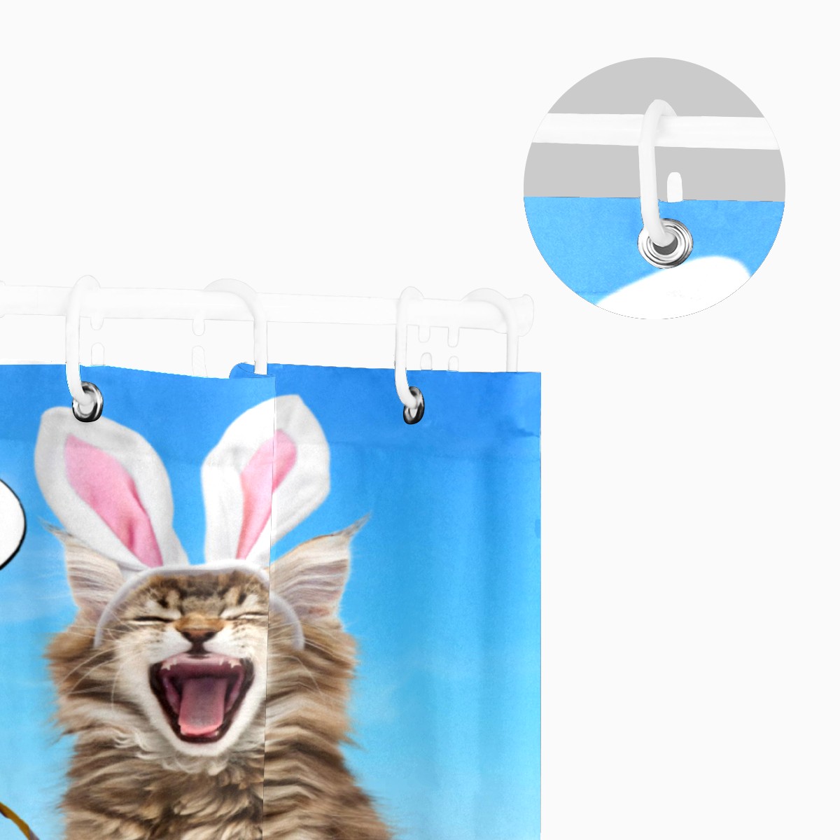 Shower Curtains for Bathroom Funny Cat Wih Easter Bunny Ear Waterproof Polyester Fabric 60 x 72 inches Home Decor Bathroom Curtains for Kids Girls Boys with 12 Hooks