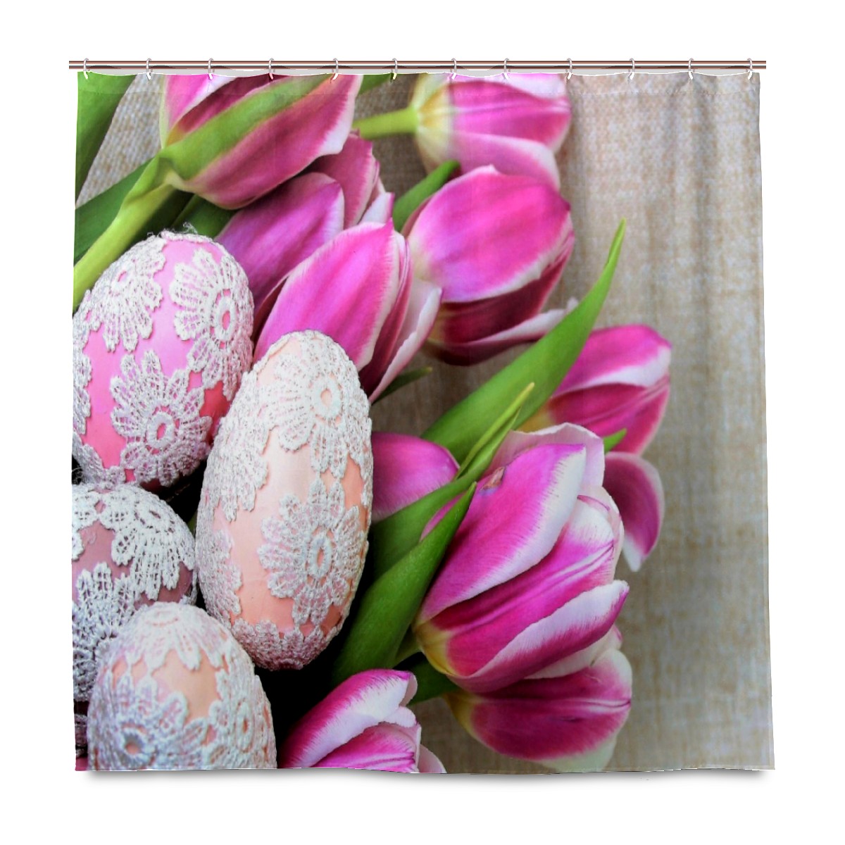 Shower Curtains for Bathroom Easter Tulip Flower Eggs Waterproof Polyester Fabric 60 x 72 inches Home Decor Bathroom Curtains for Kids Girls Boys with 12 Hooks