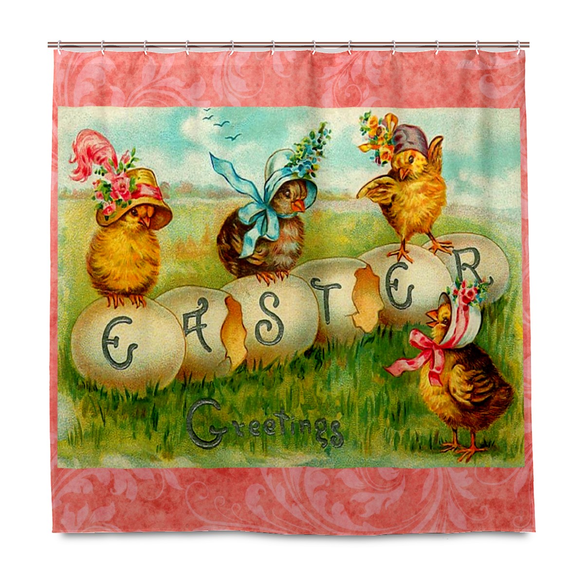 Shower Curtains for Bathroom Easter Chicken Funny Farm Waterproof Polyester Fabric 60 x 72 inches Home Decor Bathroom Curtains for Kids Girls Boys with 12 Hooks