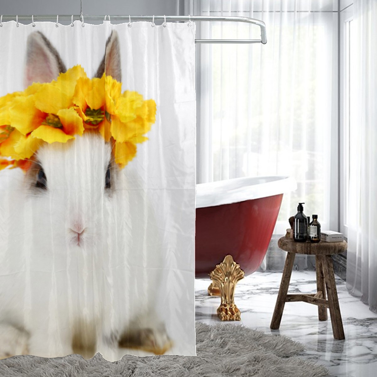 Shower Curtains for Bathroom Cute Rabbit Waterproof Polyester Fabric 60 x 72 inches Home Decor Bathroom Curtains for Kids Girls Boys with 12 Hooks