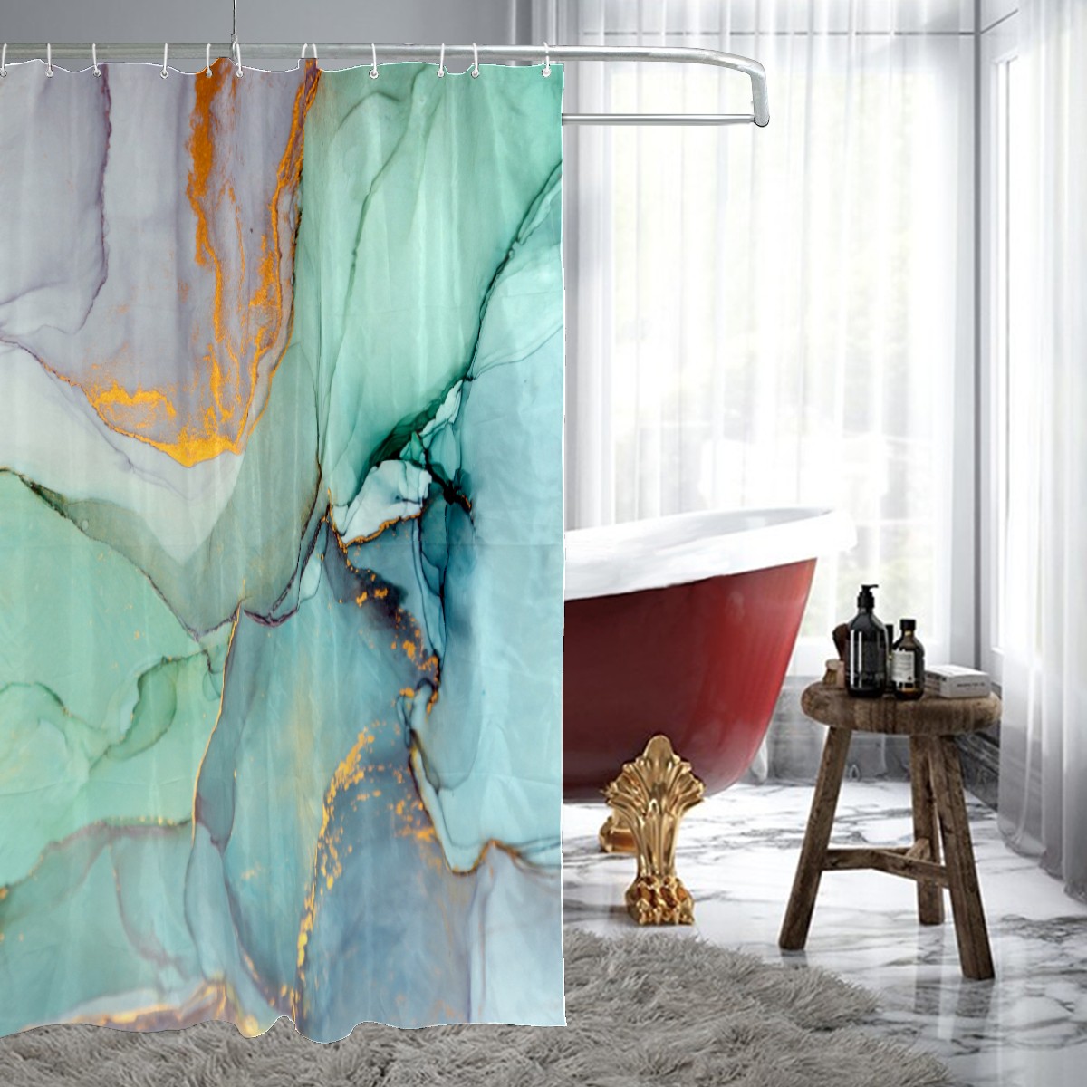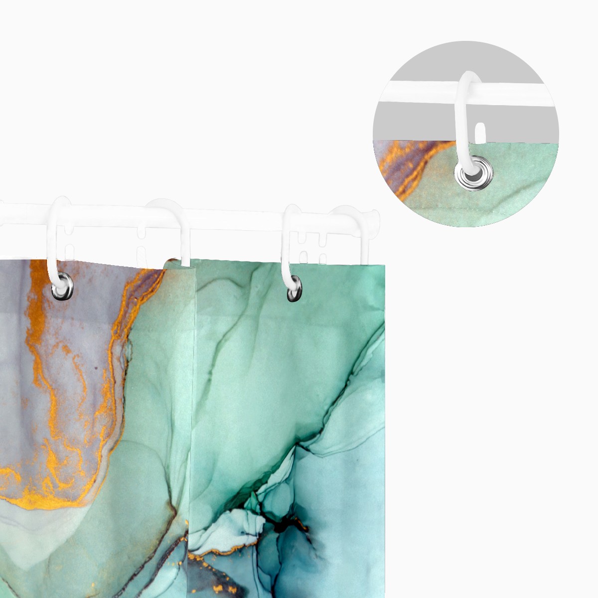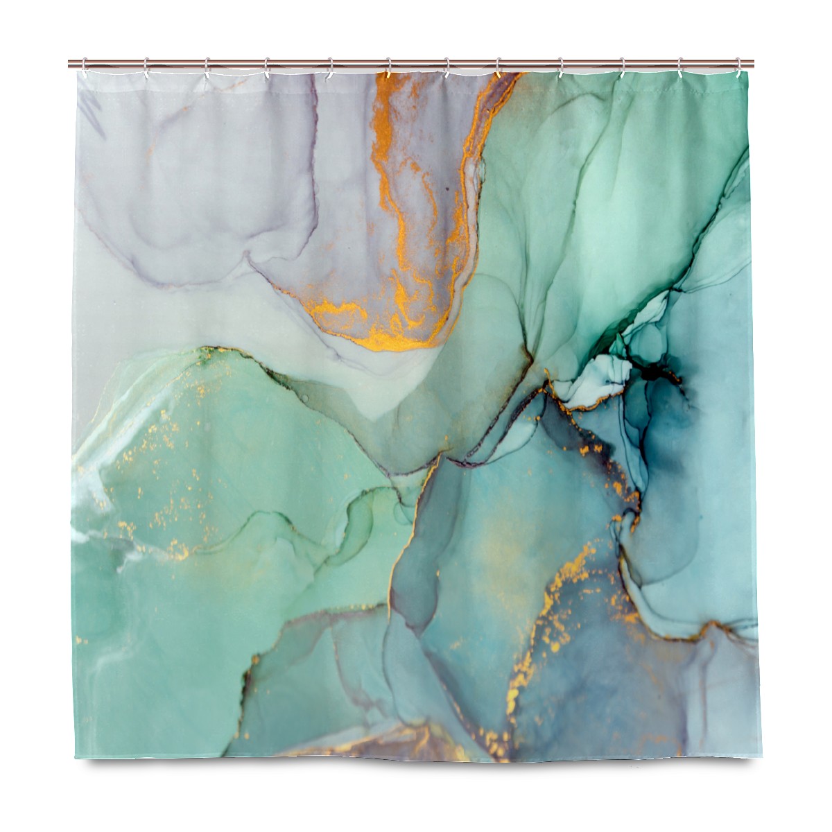 Shower Curtains for Bathroom Abstract Green Marble Waterproof Polyester Fabric 60 x 72 inches Home Decor Bathroom Curtains for Kids Girls Boys with 12 Hooks