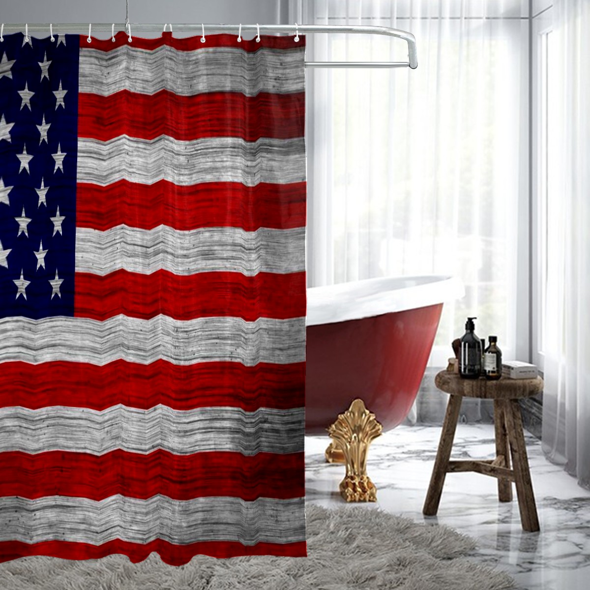 Shower Curtains for Bathroom Usa American Flag Waterproof Polyester Fabric 60 x 72 inches Home Decor Bathroom Curtains for Kids Girls Boys with 12 Hooks
