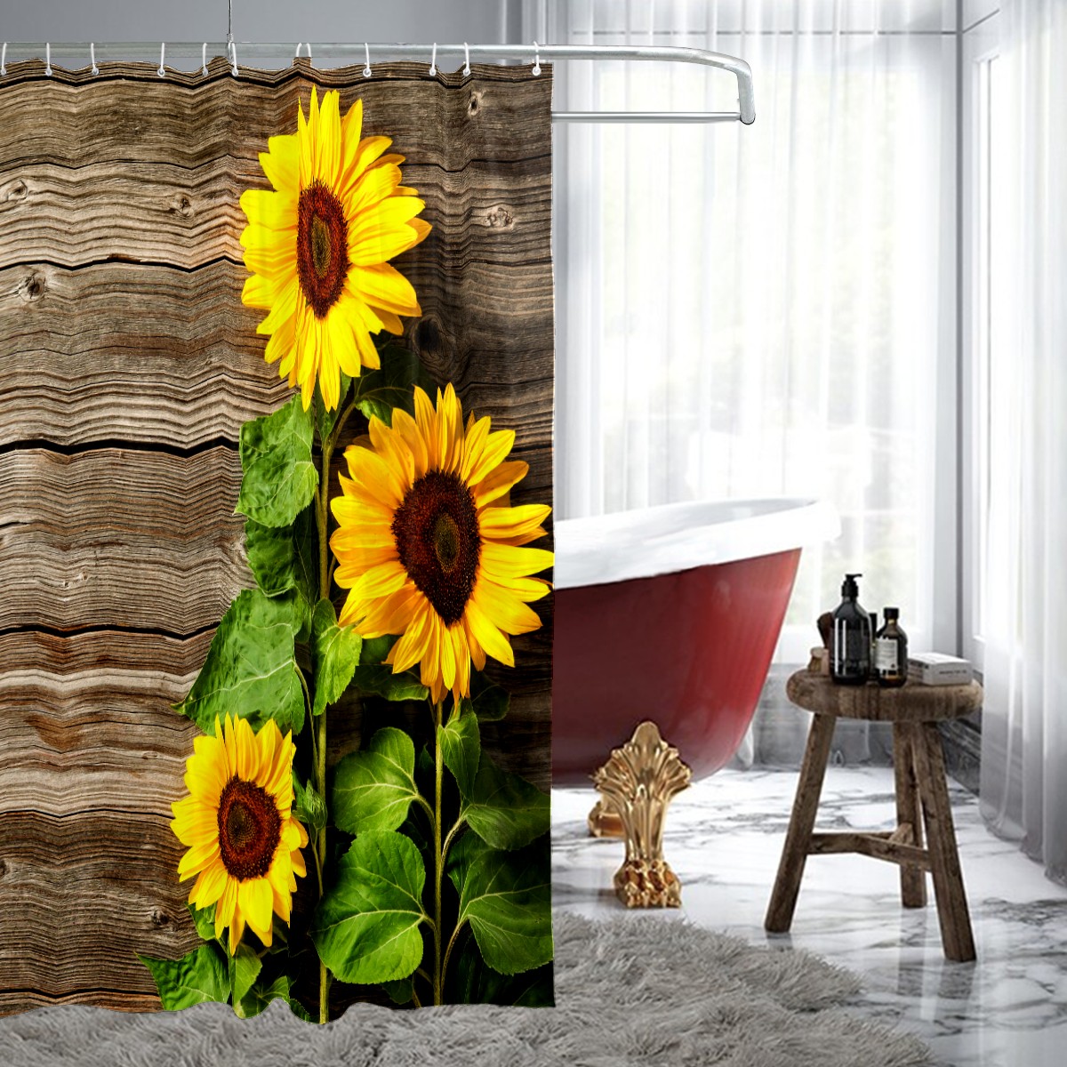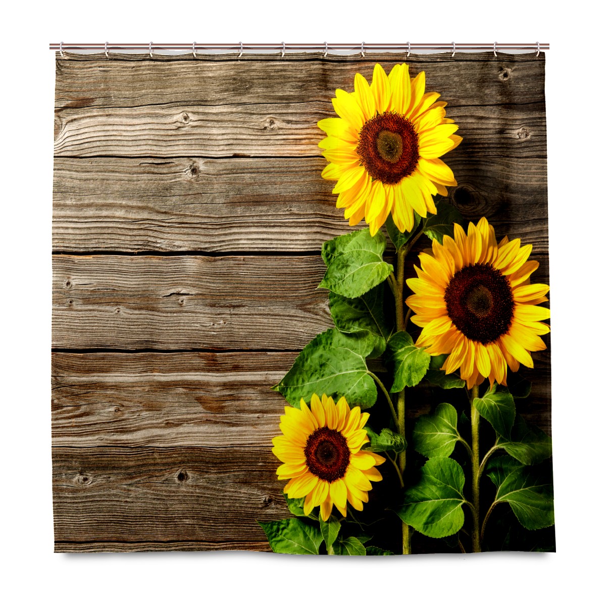 Shower Curtains for Bathroom Retro Sunflower On The Wood Board Waterproof Polyester Fabric 60 x 72 inches Home Decor Bathroom Curtains for Kids Girls Boys with 12 Hooks