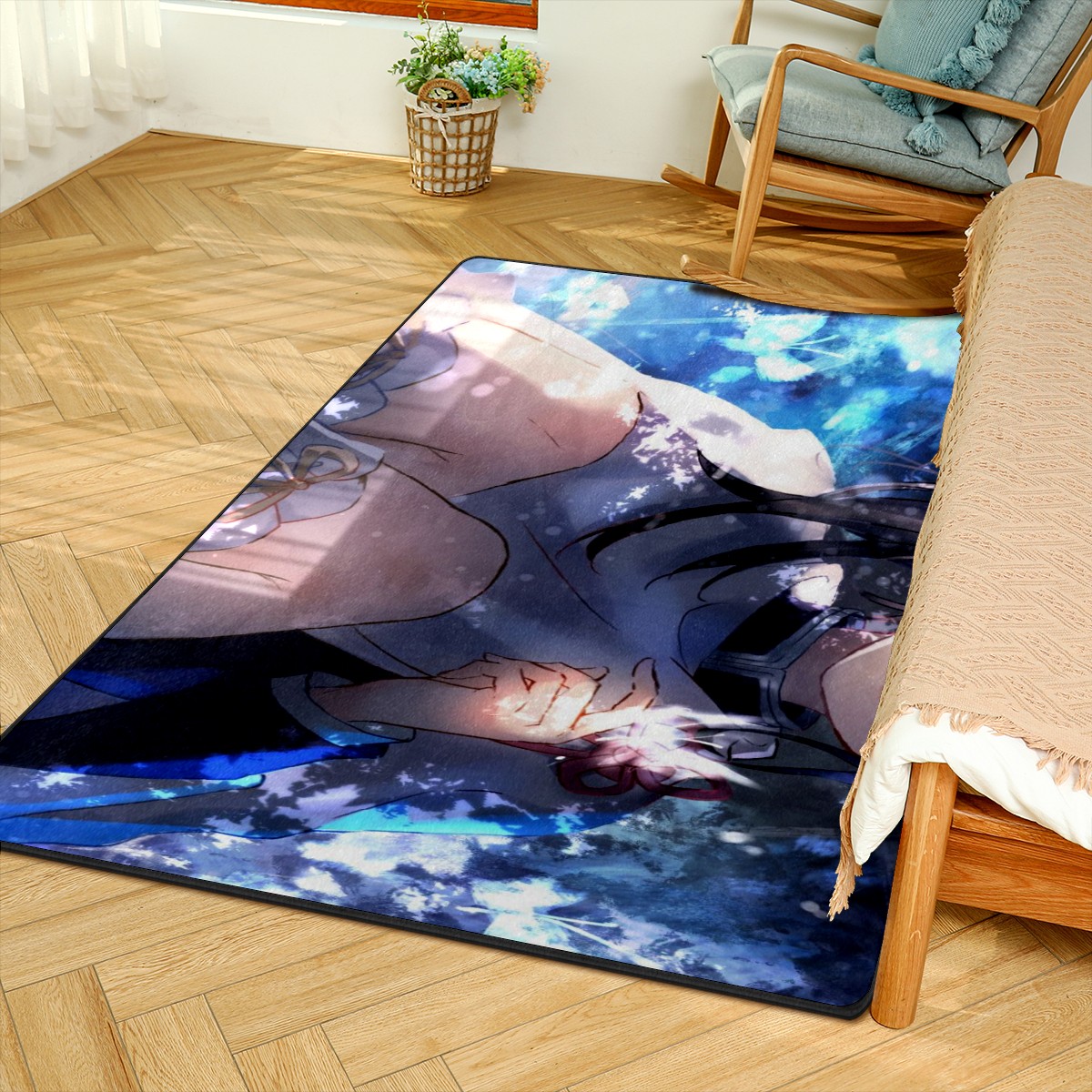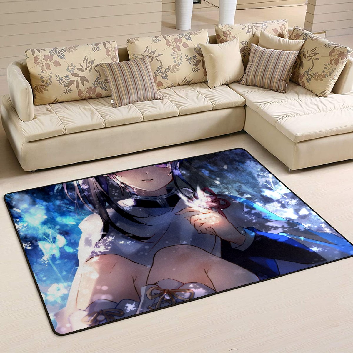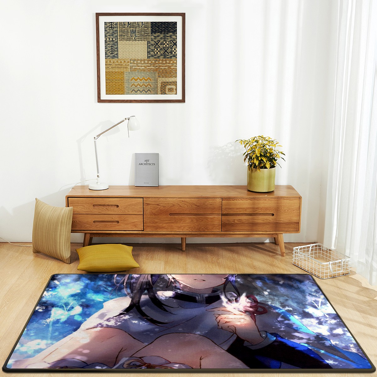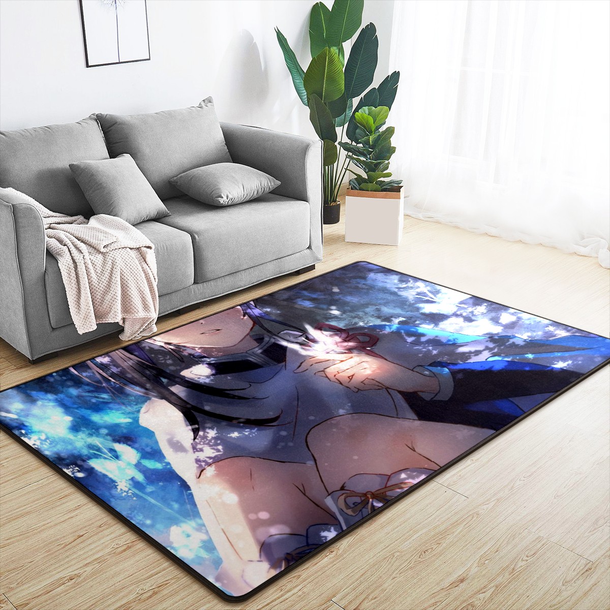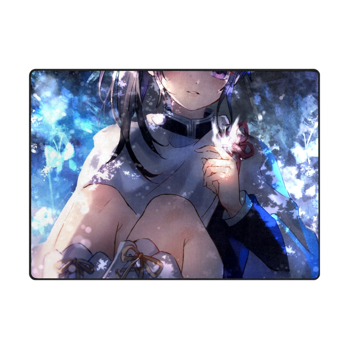 Home Mat Tsuyuri Kanawo Demon Slayer Purple Butterfly Indoor Area Rug Livingroom Bedroom Sofa Carpet Non Slip Home Hotel Large Custom Floor Mat 60x39in