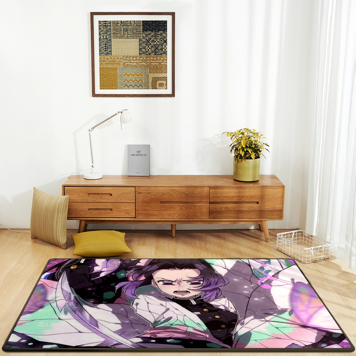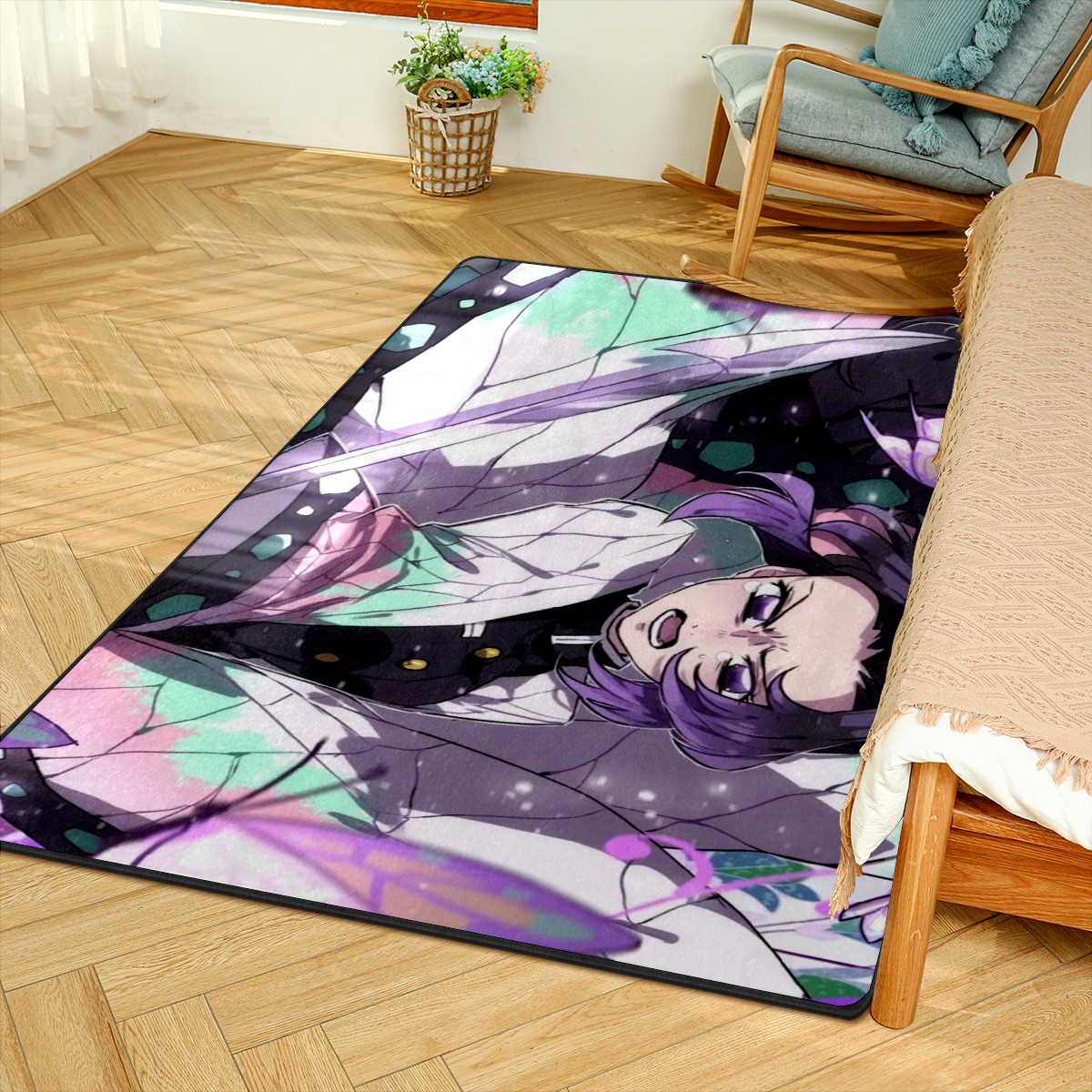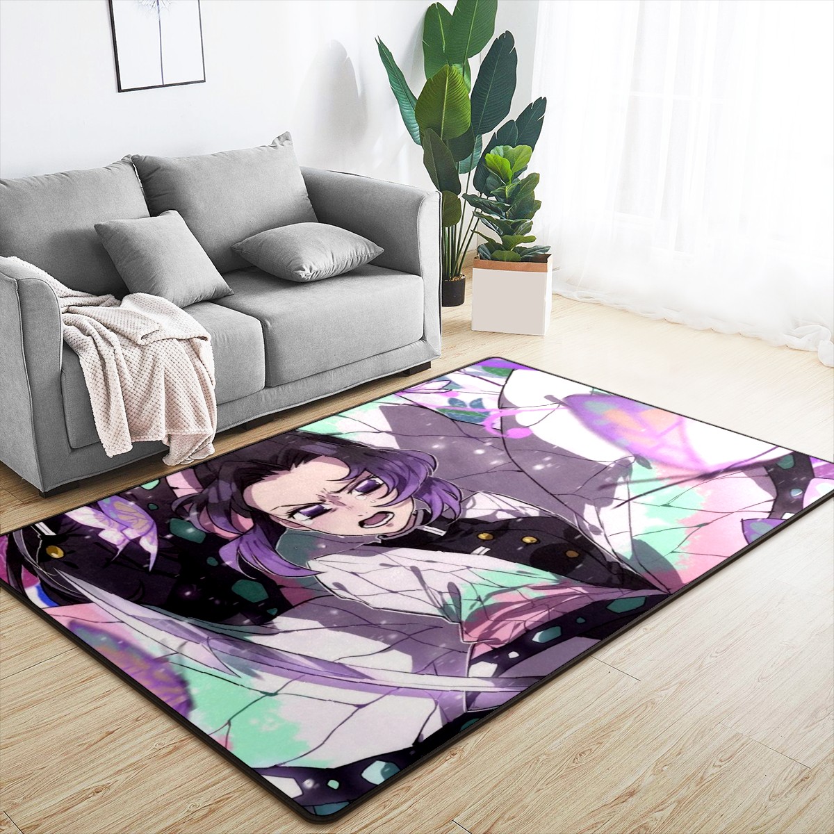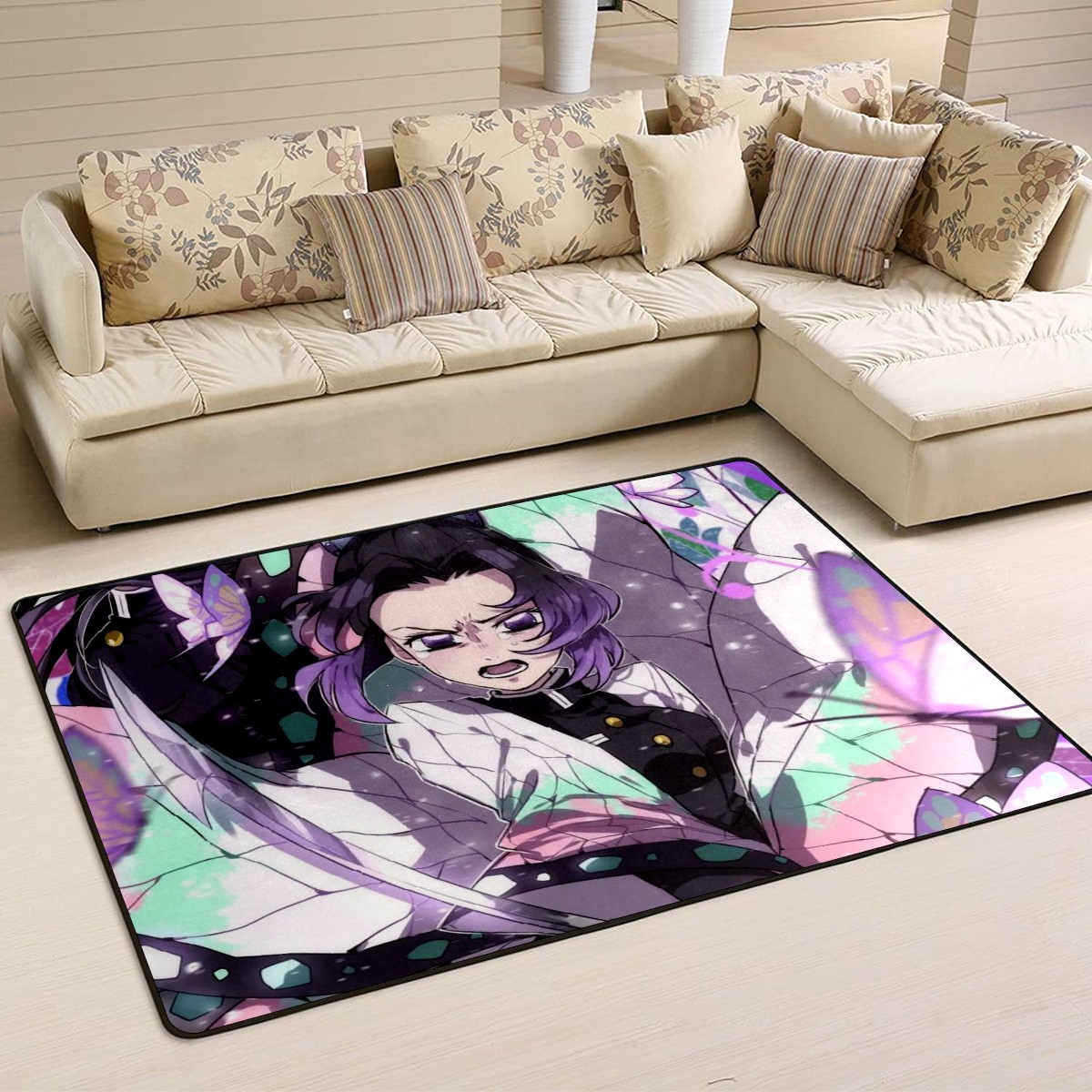 Home Mat Tsuyuri Kanawo Kochou Shinobu Demon Slayer Indoor Area Rug Livingroom Bedroom Sofa Carpet Non Slip Home Hotel Large Custom Floor Mat 60x39in